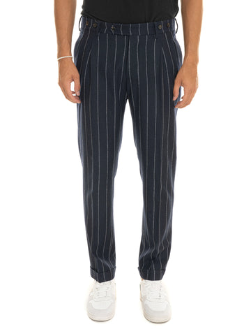 Pantalone modello chino Berwich BARBERGC, pinces sul davanti, fantasia rigata, spacchetto sartoriale, risvolti sul fondo,...