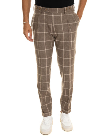 Pantalone modello chino Berwich BARBER, fantasia a quadri, pinces sul davanti, chiusura con bottone e...