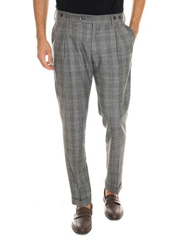 Pantalone modello chino Berwich BARBERGD, fantasia a quadri, spacchetto sartoriale, pinces sul davanti, frange sul...