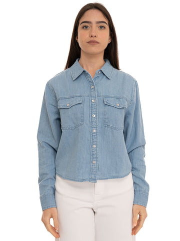 Camicia da donna in jeans, chiusura con bottoncini logati, tasche sul davanti, composizione: 70% cotone,...