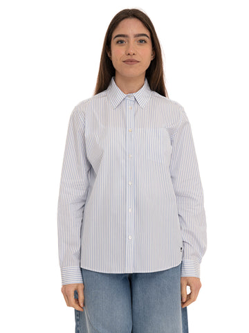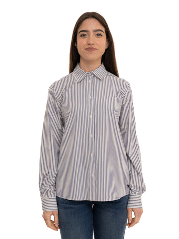 Camicia classica da donna, fantasia millerighe, manica lunga, chiusura bottoni a scomparsa, logo cucito sul...
