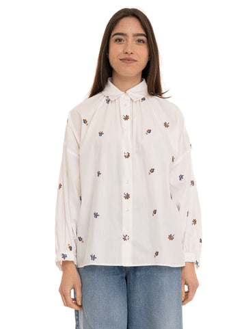 Camicia da donna in cotone Weekend Max Mara WKDBUTTERFLY, manica scesa, ricamo con fiori, spacchetti...