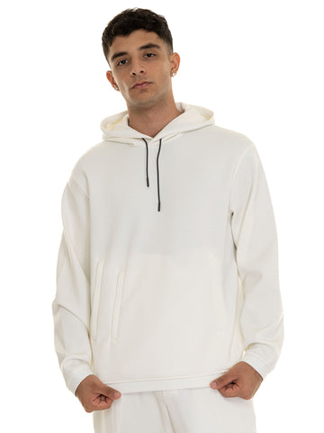 Felpa con cappuccio, fantasia tinta su tinta, chiusura zip con doppio cursore, tasche laterali, logo...