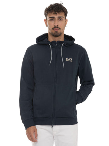 Felpa, con cappuccio, logo laterale, tasche a marsupio, composizione: 85% cotone, 15% poliestere, linea: EA7.