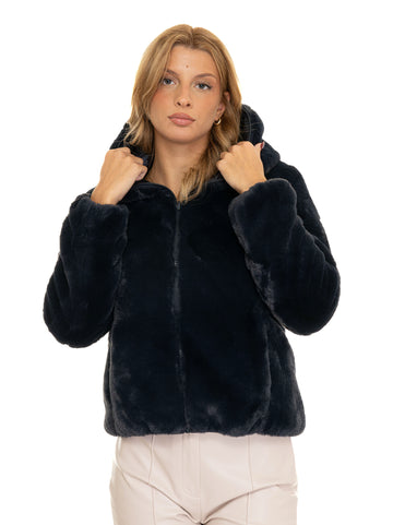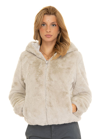 Giubbino corto Save the Duck Laila , con cappuccio, reversibile, pelliccia ecologica, tasche laterali, chiusura...