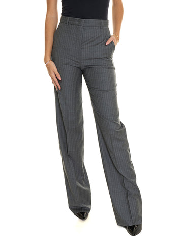 Pantalone in flanella Max Mara Studio Gong, fantasia gessata, gamba larga, bustino con passanti, tasca...