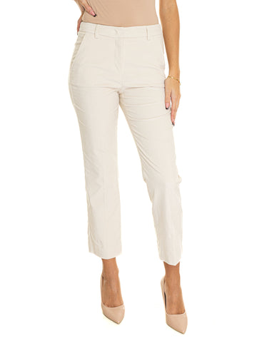 Pantalone cropped, vita alta, chiusura con bottone e zip a scomparsa, pinces sul davanti, tasche...