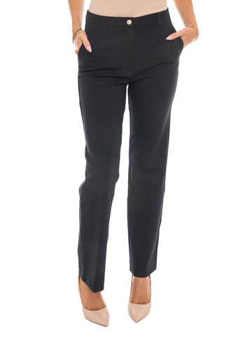Pantalone classico, gamba dritta, vita media, tasche laterali, chiusura con gancio e zip a scomparsa,...