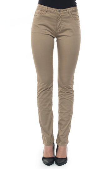 Pantalone in cotone, modello chino, chiusura con bottone e zip a scomparsa, cintura in vita...