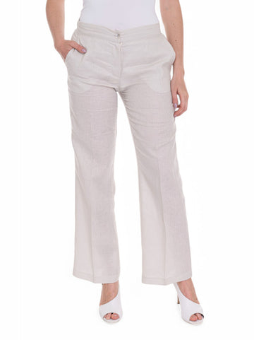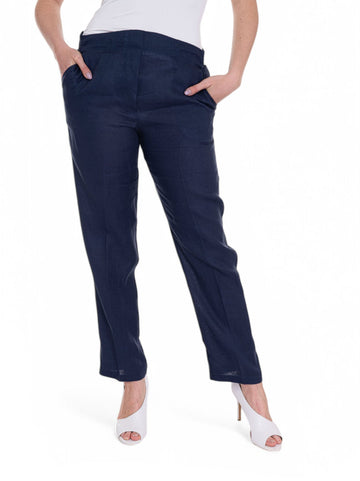 Pantalone a sigaretta, tessuto di lino, elastico in vita, chiusura con bottone e zip a...