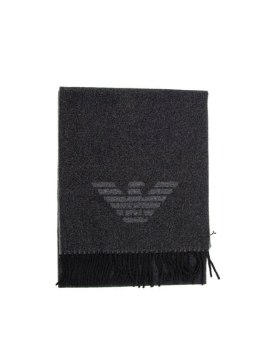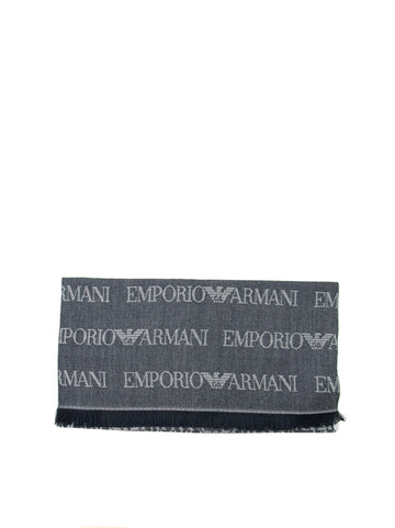 Sciarpa, tessuto logato, profilo con frange, italian design, composizione: 100% lana, linea: EMPORIO ARMANI.