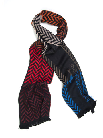 Sciarpa pashmina, fantasia geometrica, logata, composizione: 50% lana, 50% acrilico, linea: HARMONT & BLAINE.