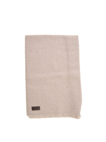 Sciarpa classica, fantasia diagonale, frange sul fondo, logo in pelle, composizione: 100% lana, linea: CANALI.