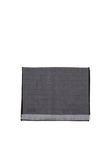 Sciarpa classica, fantasia geometrica, frange sul fondo, bicolore, logo in pelle, composizione: 100% lana, linea:...