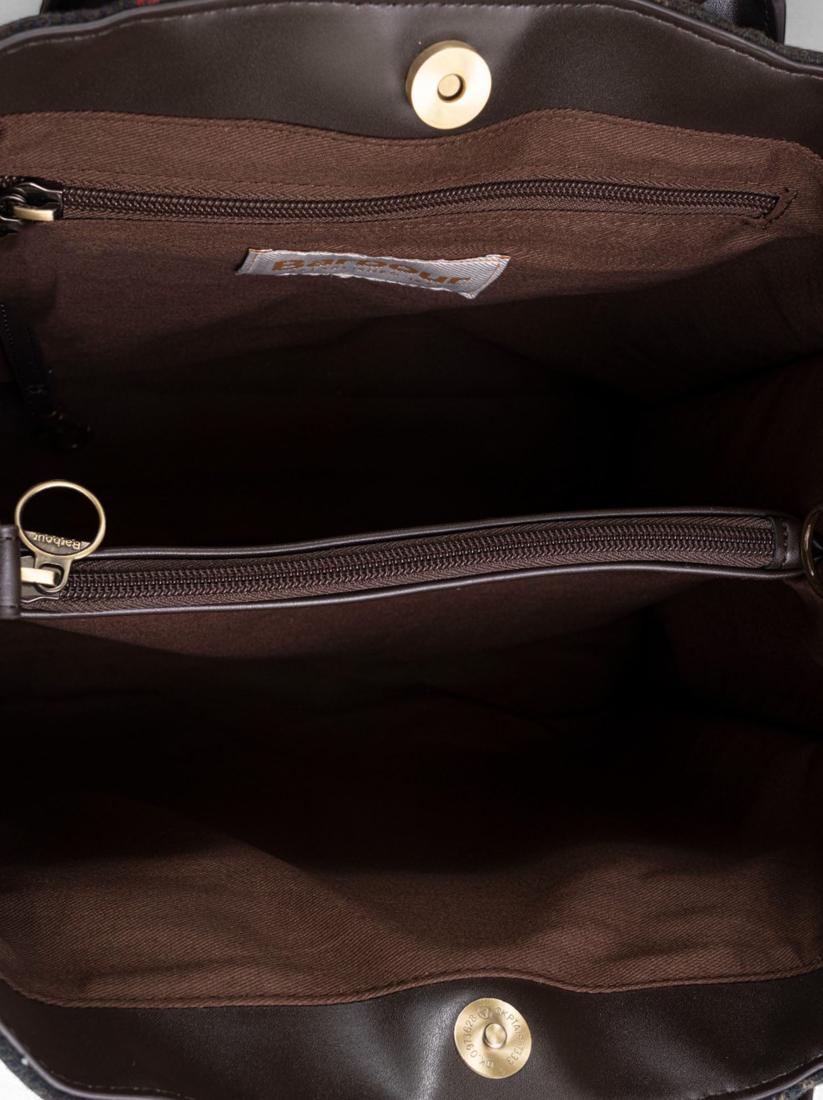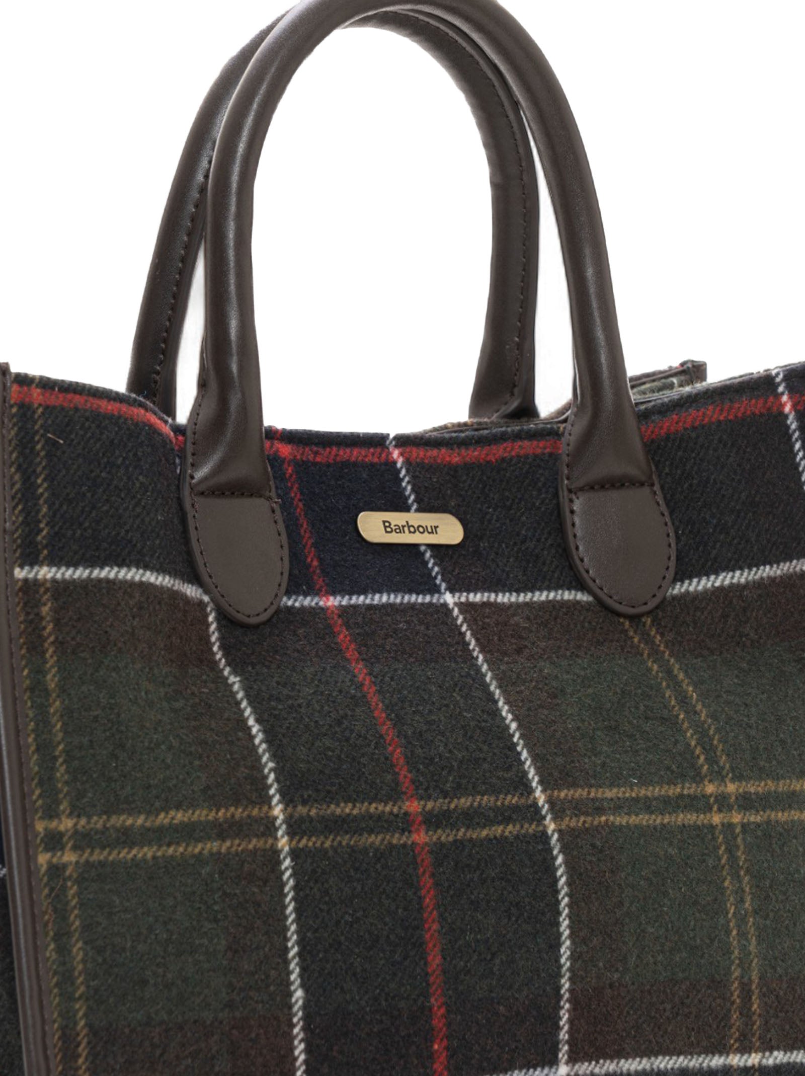 Borsa in tessuto modello shopper Barbour Barrhill, fantasia scozzese, doppi manici, tracolla regolabile e removibile in tessuto, tasca interna chiusa con cerniera, piedini salvafondo, composizione: 65% poliestere, 20% lana, 10% acrilico, 5% poliammide, linea: BARBOUR.