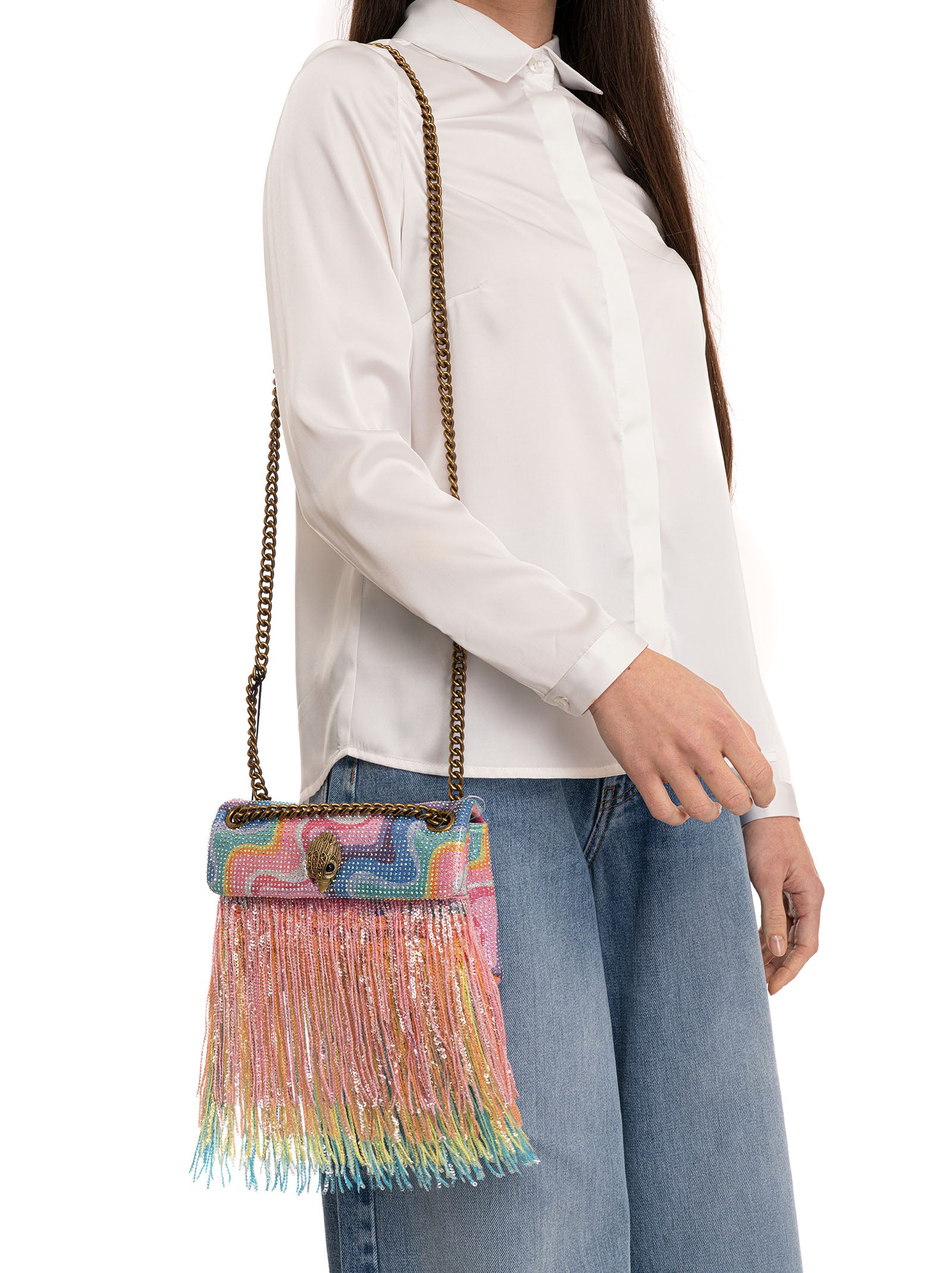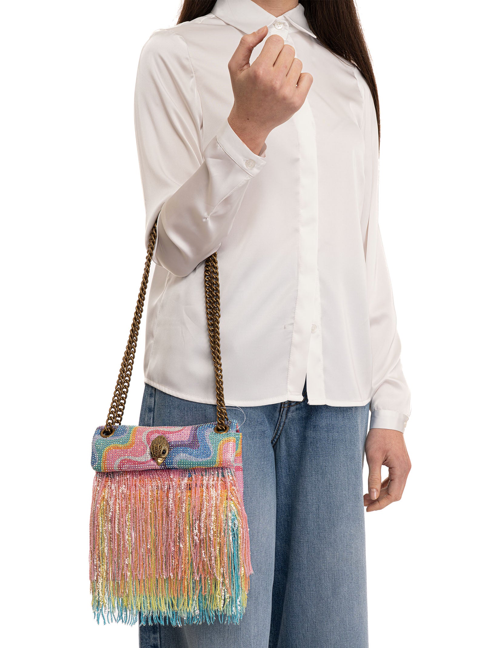 Borsa piccola Kurt Geiger MINI KENSINGTON FRINGE, tracolla regolabile a catena, applicazione frange paillettes, chiusura con patta e bottone automatico, foderata, logo aquila , tasca interna, composizione: 100% poliestere, interno: 100% poliestere, linea: KURT GEIGER.