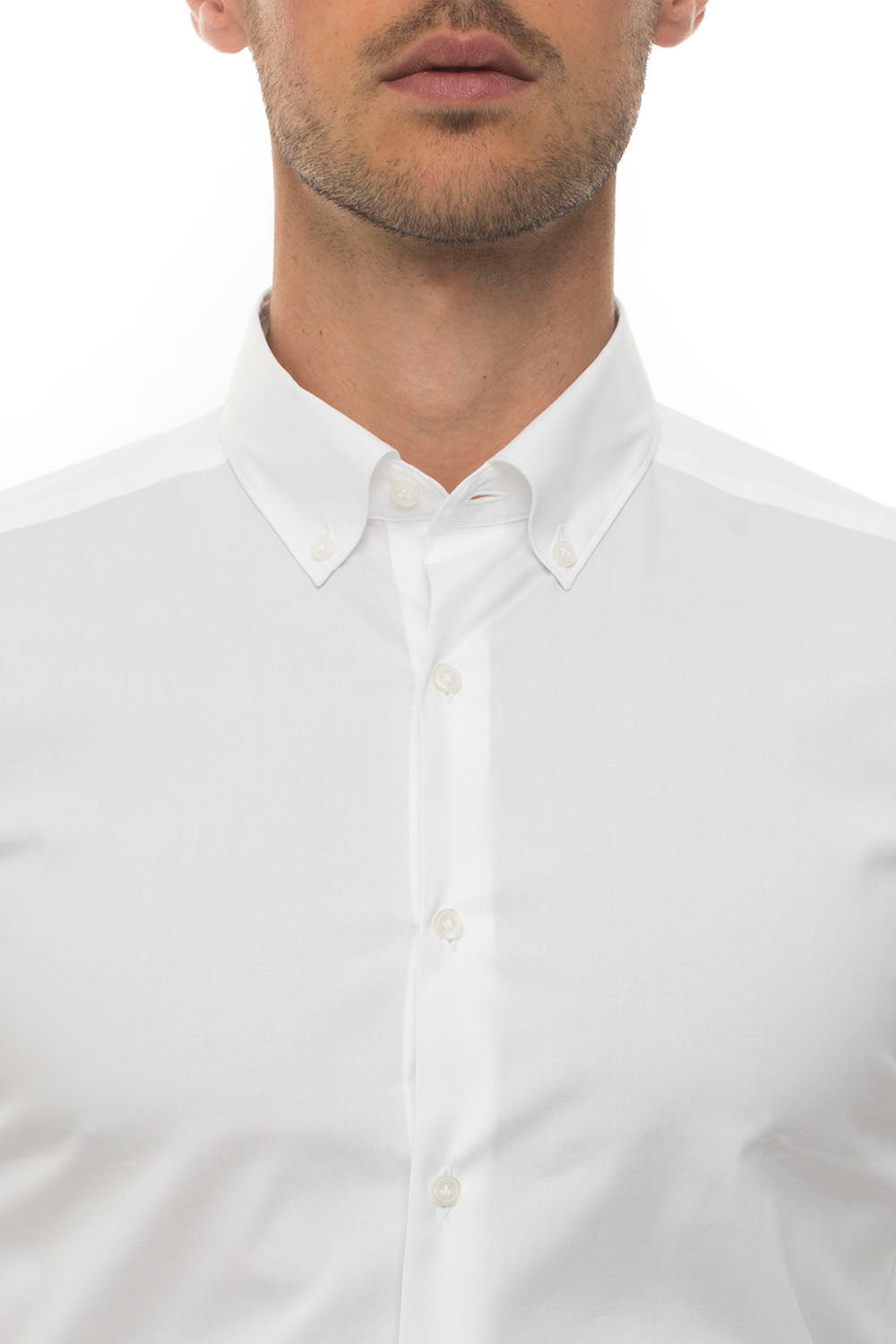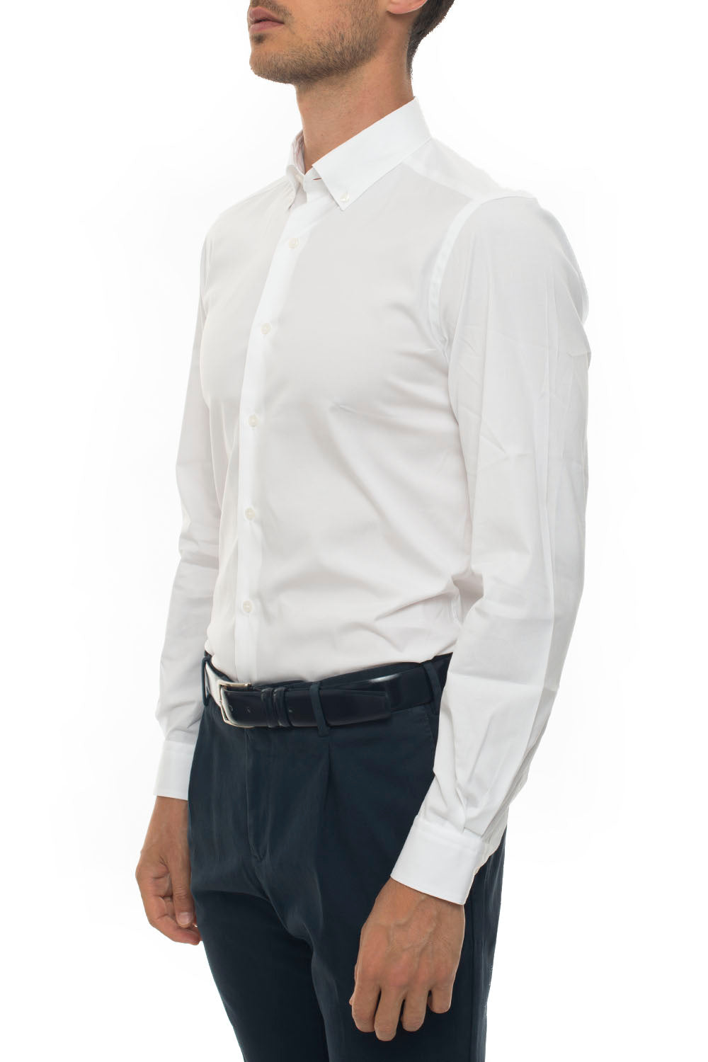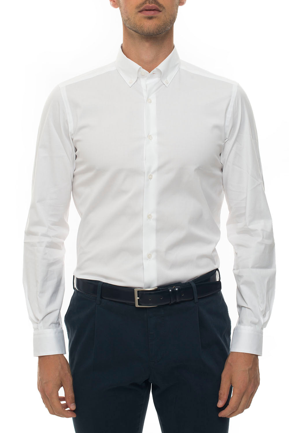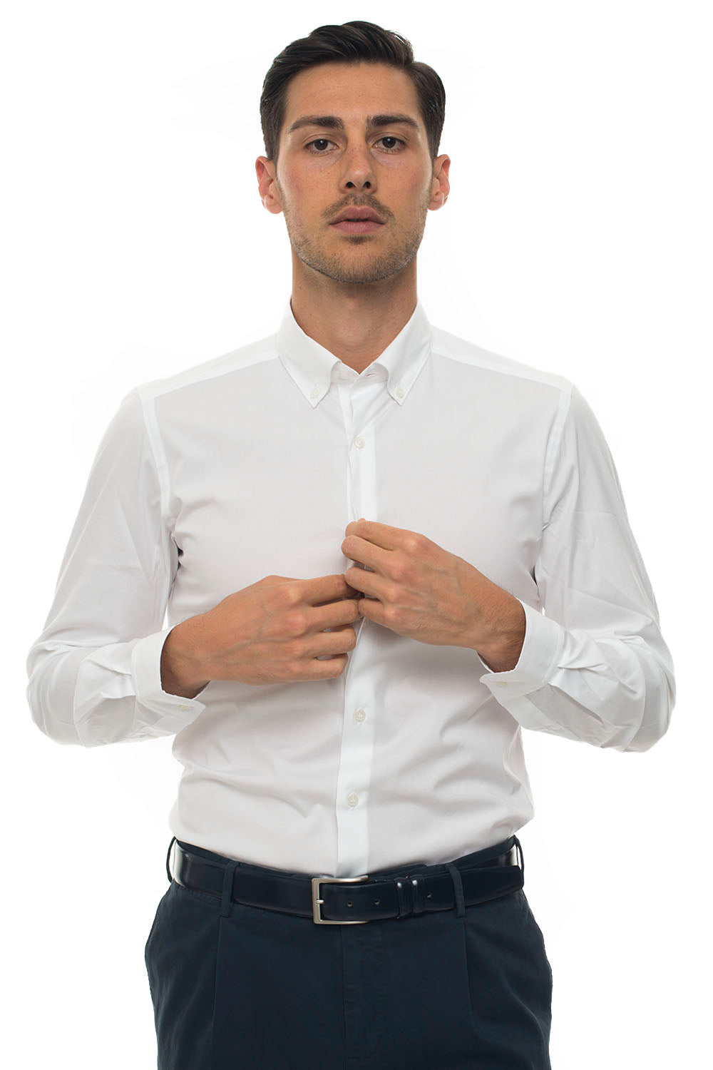 Camicia casual, collo button-down, tinta unita, linguetta con logo, vestibilità slim, composizione: 96% cotone, 4% elastan, linea: FAY.