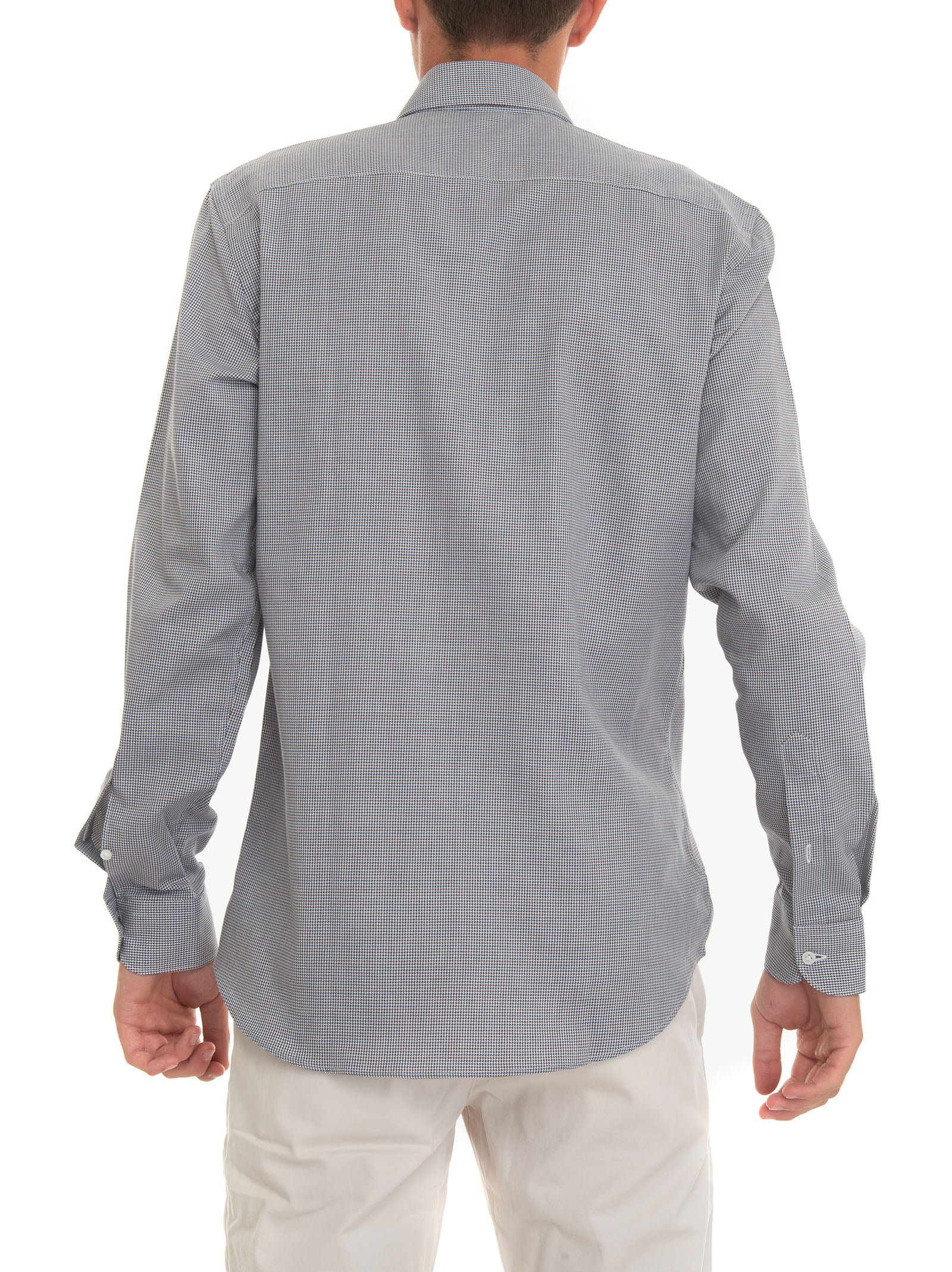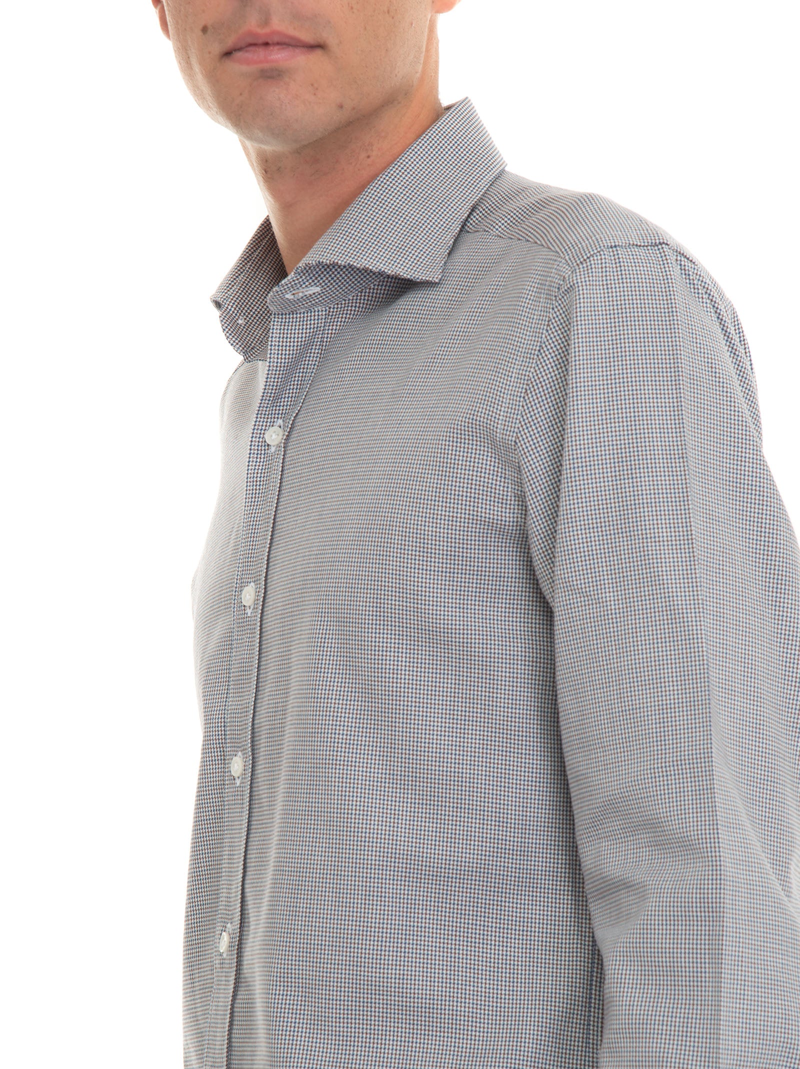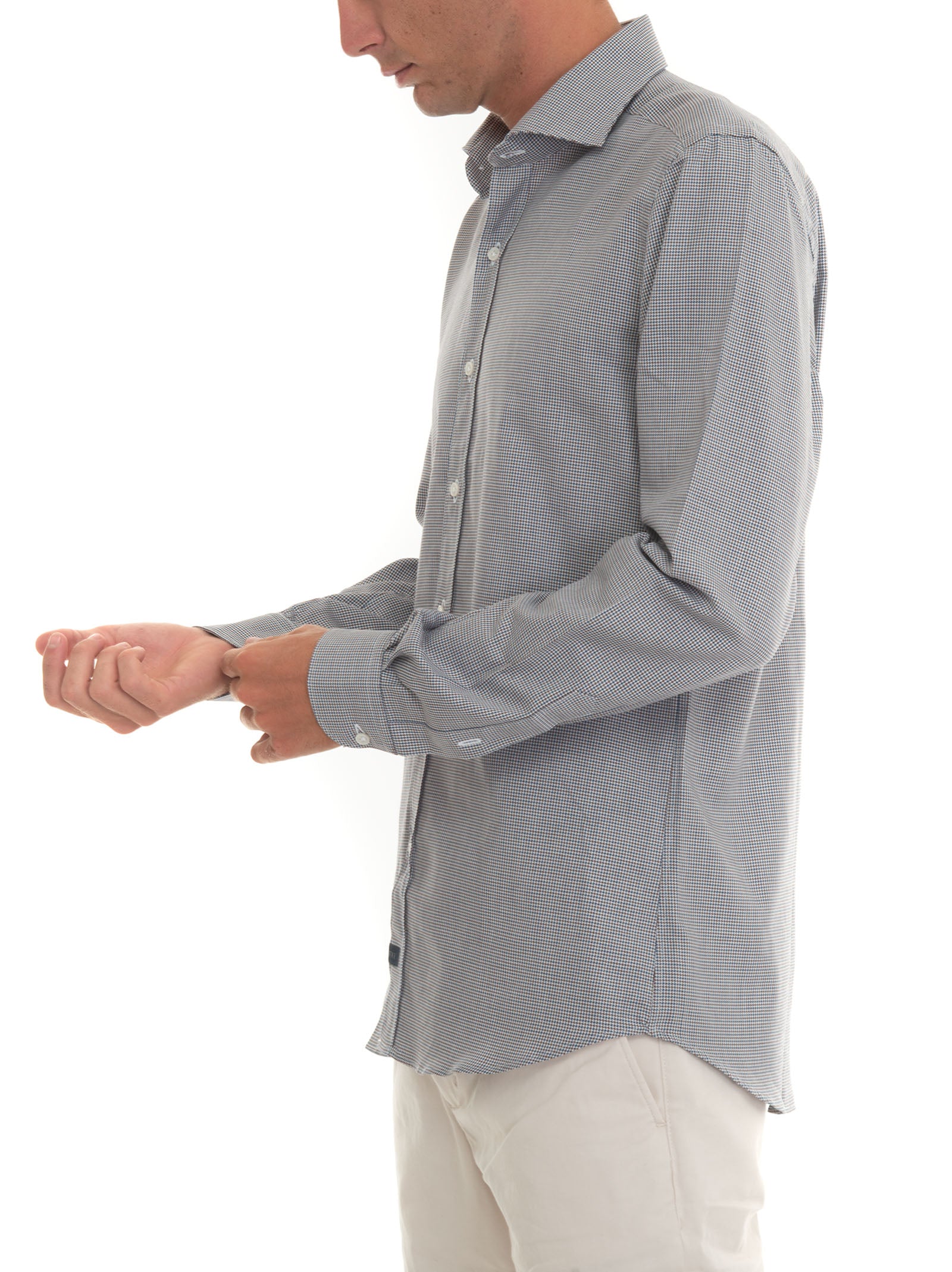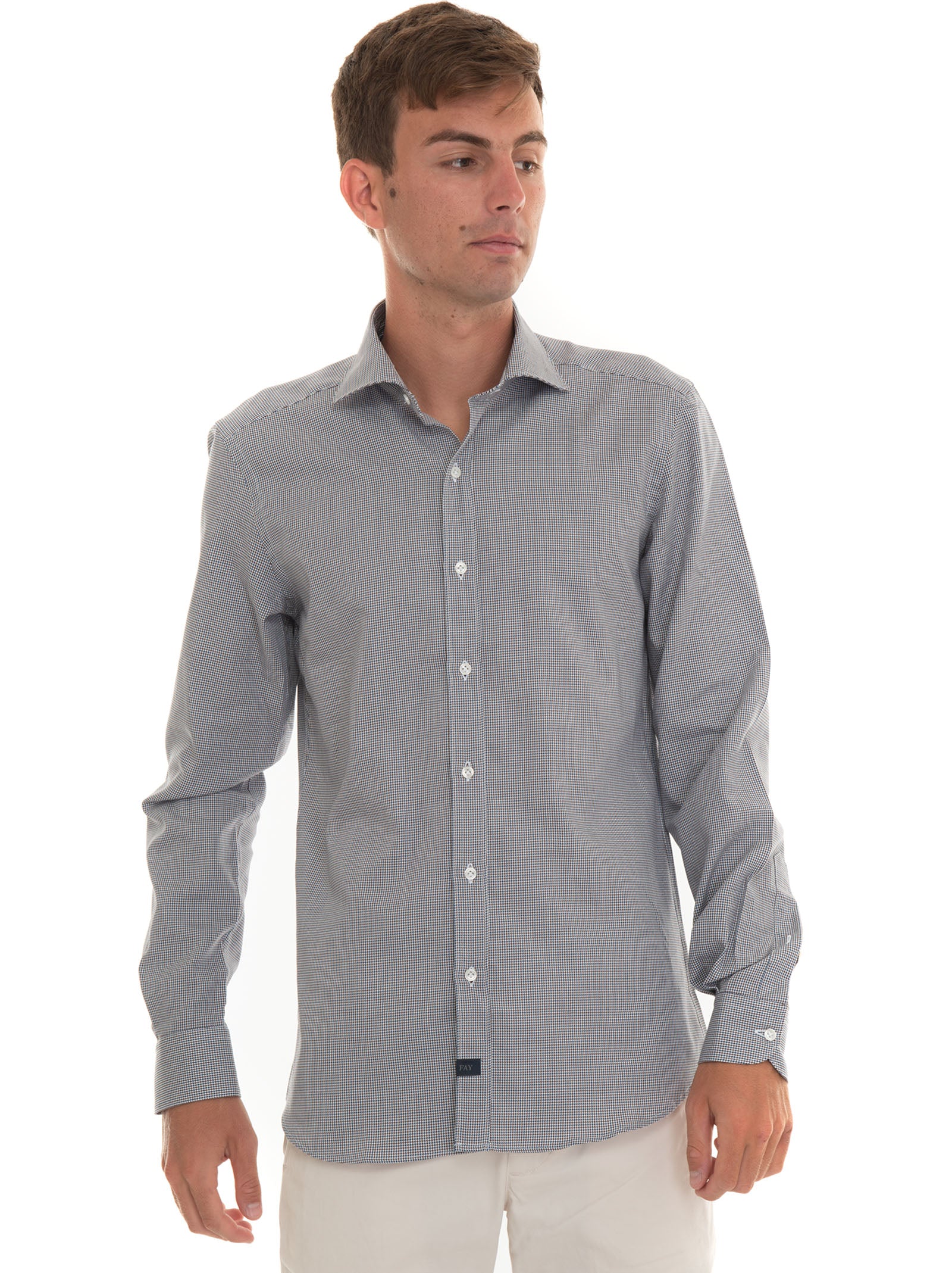 Camicia casual, collo francese, fantasia pied de poule, schiena con due pinces, linguetta con logo, vestibilità slim, composizione: 100% cotone, linea: FAY.