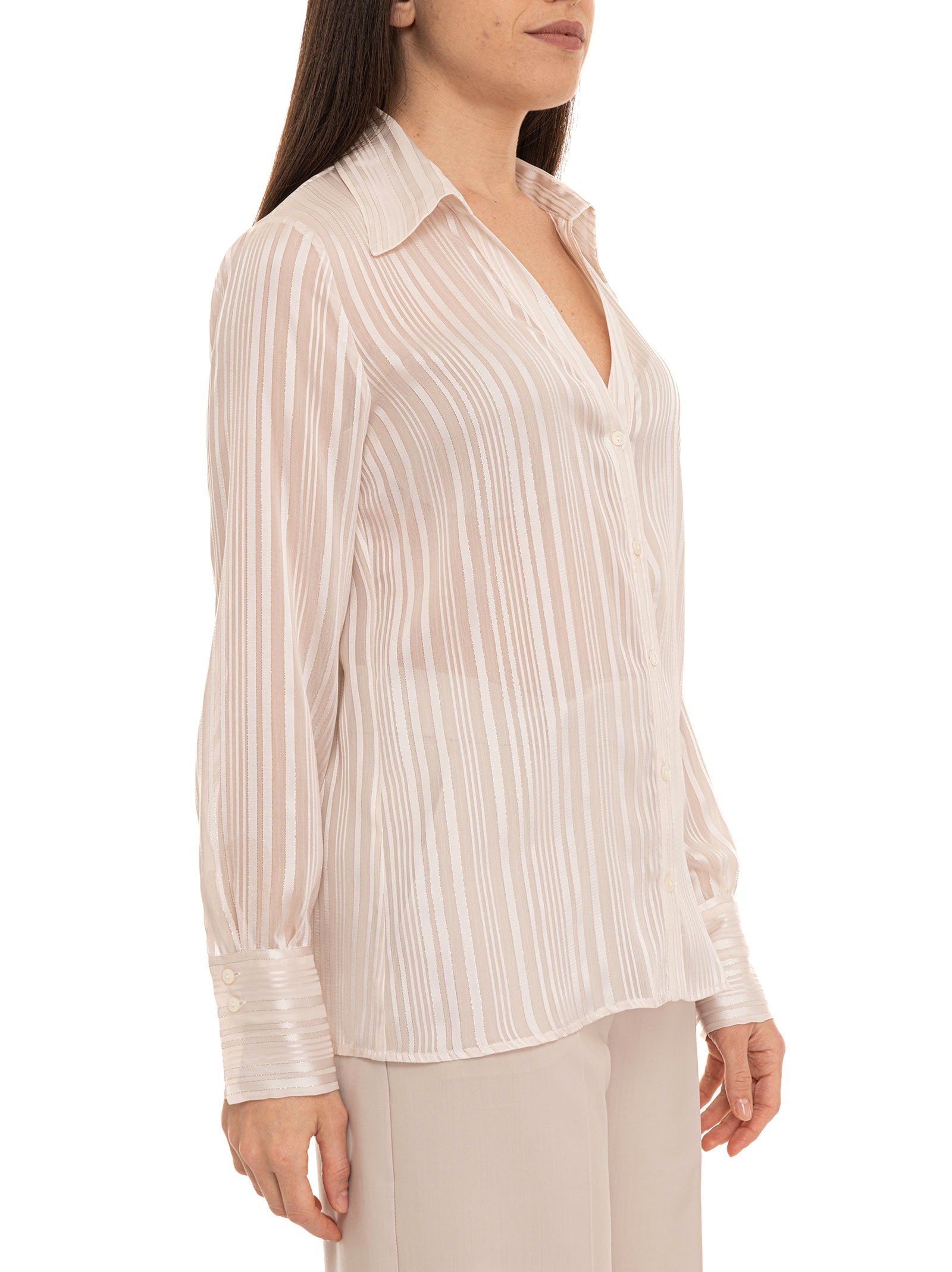 Camicia da donna Pennyblack PBPDONNOLA, tessuto in raso, manica lunga, scollo a v, chiusura bottoni, inserti in lurex, composizione: 98% poliestere, 2% metallizzato, linea: PENNYBLACK.