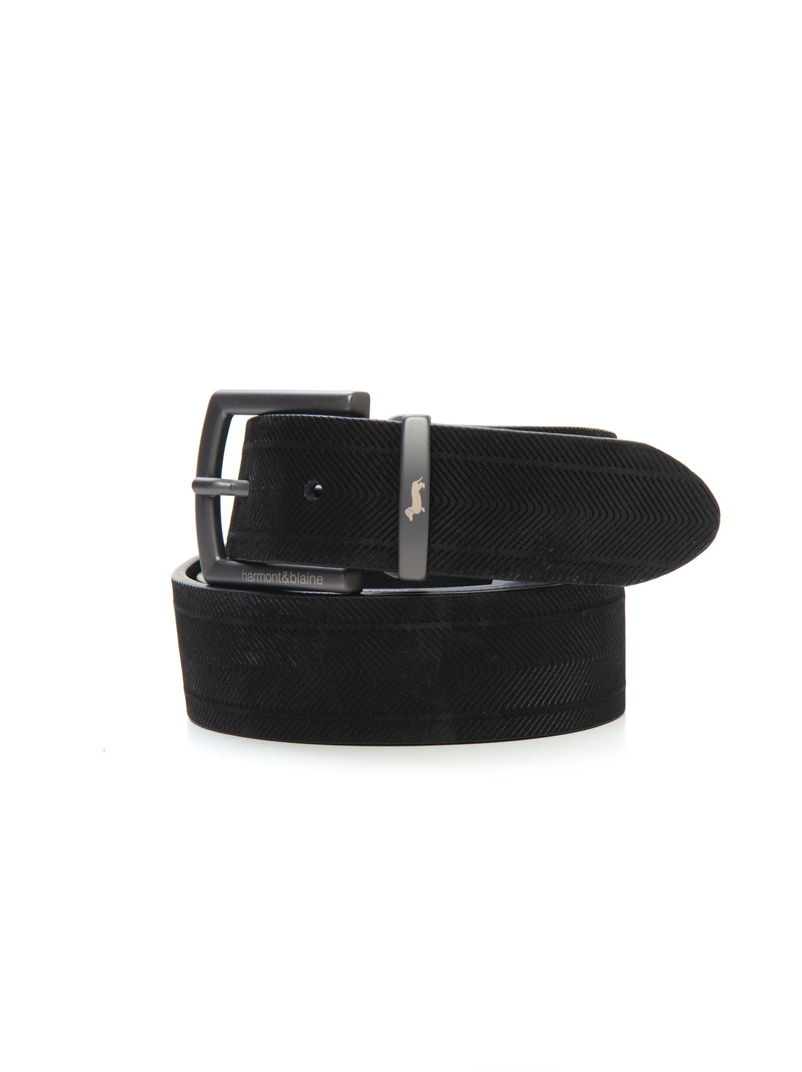 Cintura, fantasia spigata, fibbia logata, composizione: 100% pelle, linea: HARMONT & BLAINE.