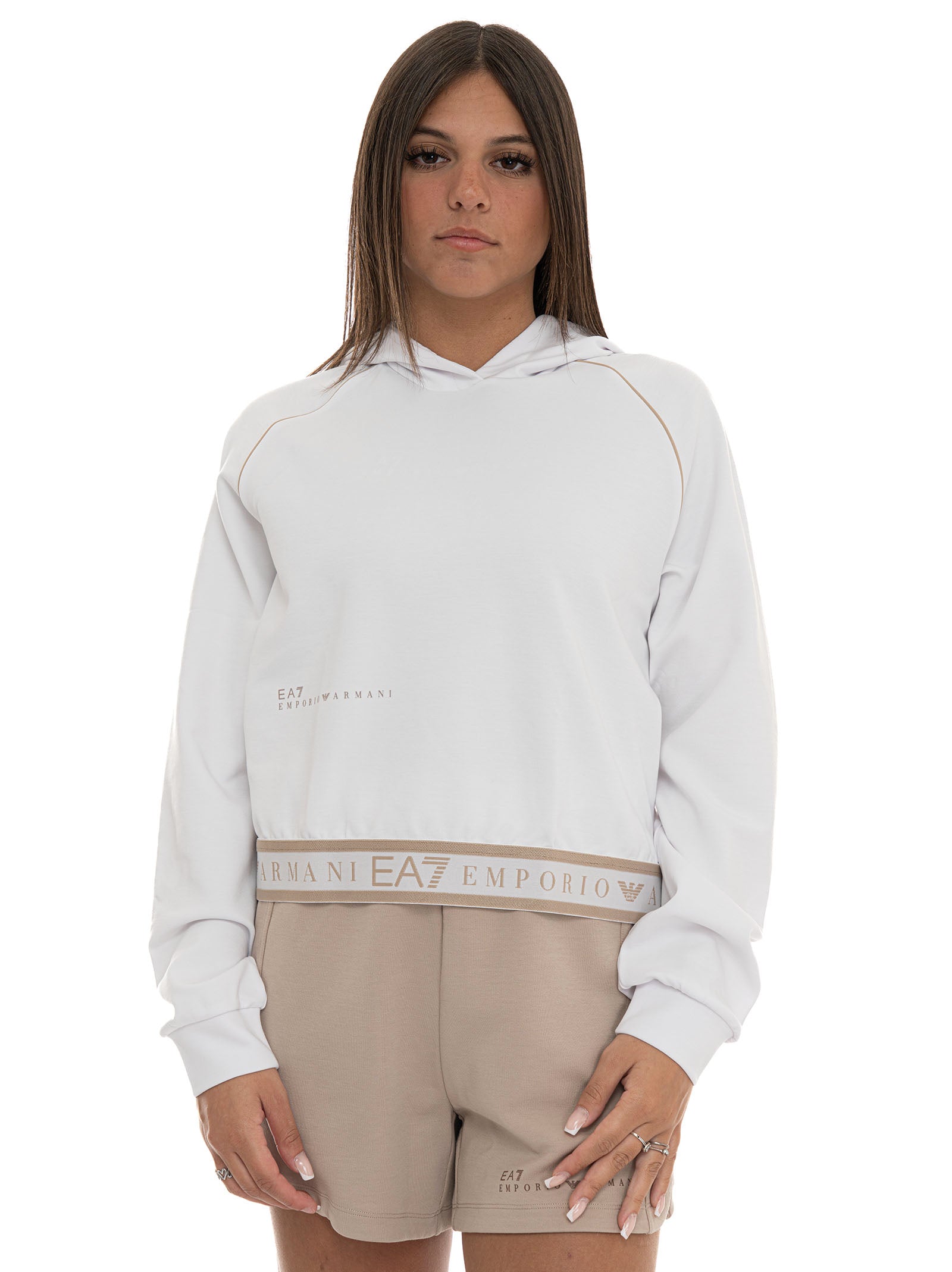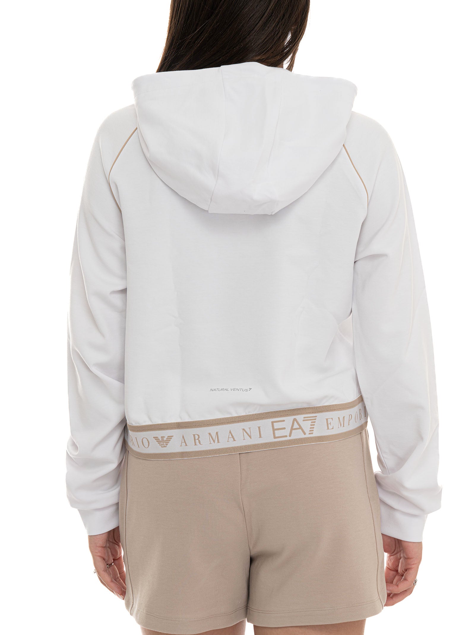 Felpa, con cappuccio, dettagli a contrasto di colore, balza sul fondo, logo anteriore, composizione: 50% poliestere, 24% cotone, 23% modal, 3% elastan, linea: EA7.