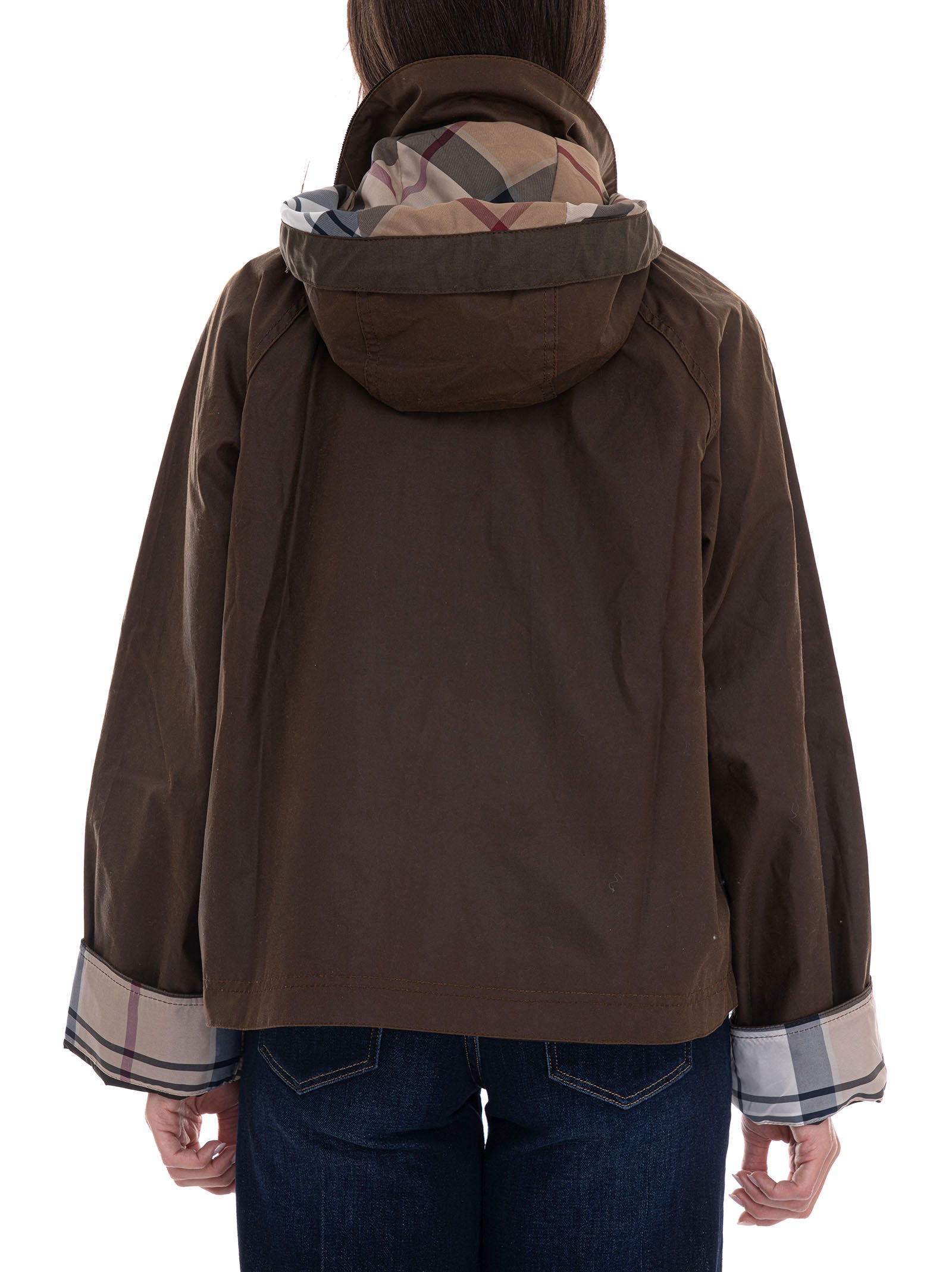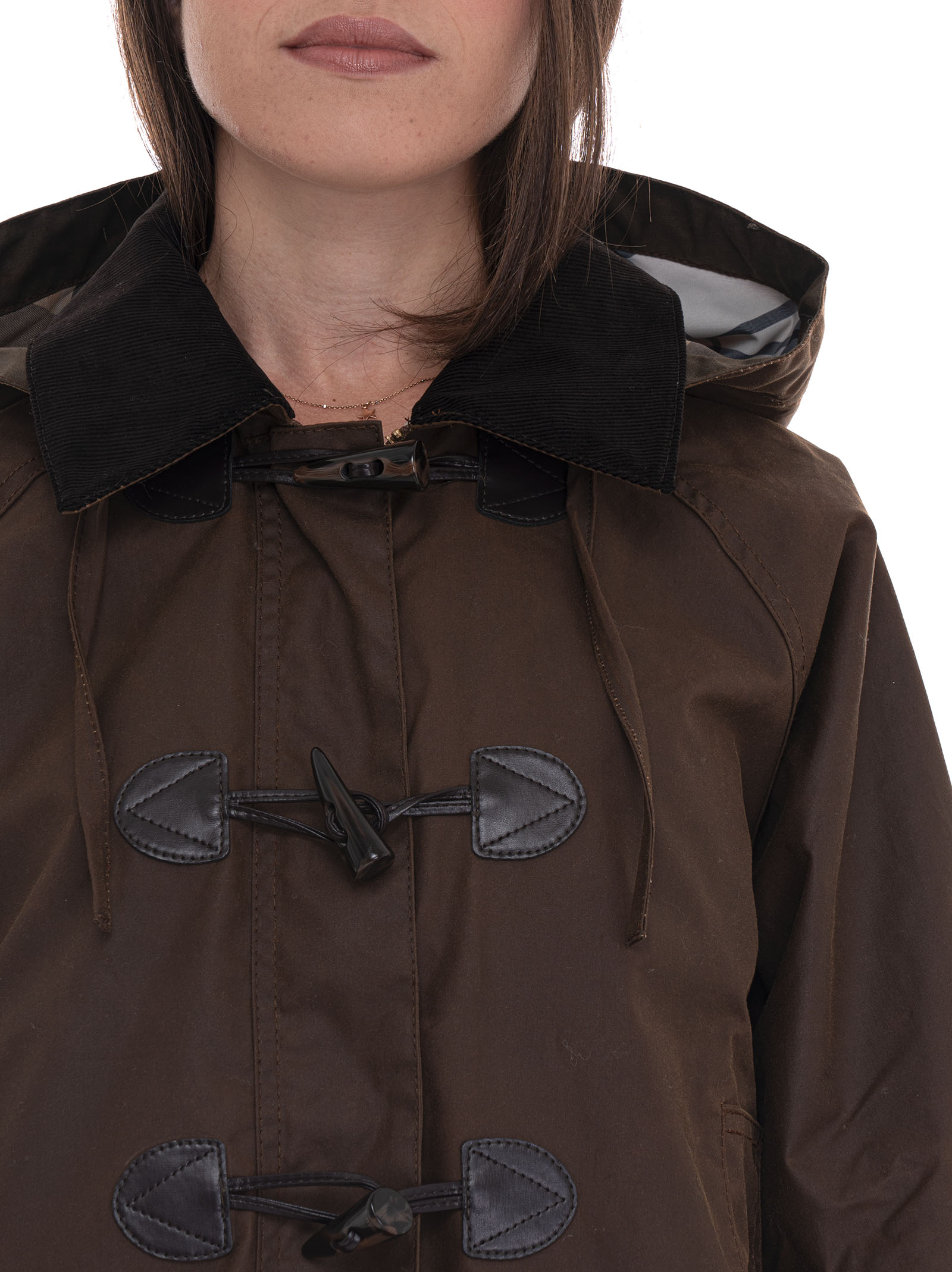 Giaccone con alamari Barbour Myra wax, cappuccio staccabile, svasato, polsini a contrasto, collo a costine, fodera interna a quadri, composizione: 100% cotone cerato, linea: BARBOUR.