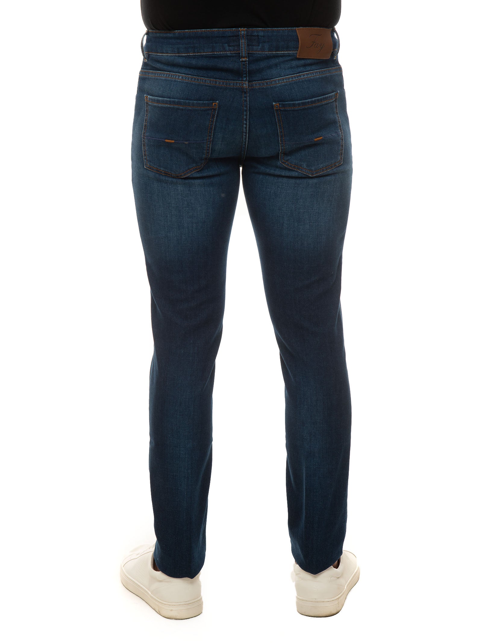Jeans 5 tasche, chiusura con bottone e zip a scomparsa, passante in pelle logato, impunture in contrasto, stone washed, fondo 16 cm, vestibilità slim, composizione: 92% cotone, 6% elastomultiestere, 2% elastan, elastanlinea: FAY.
