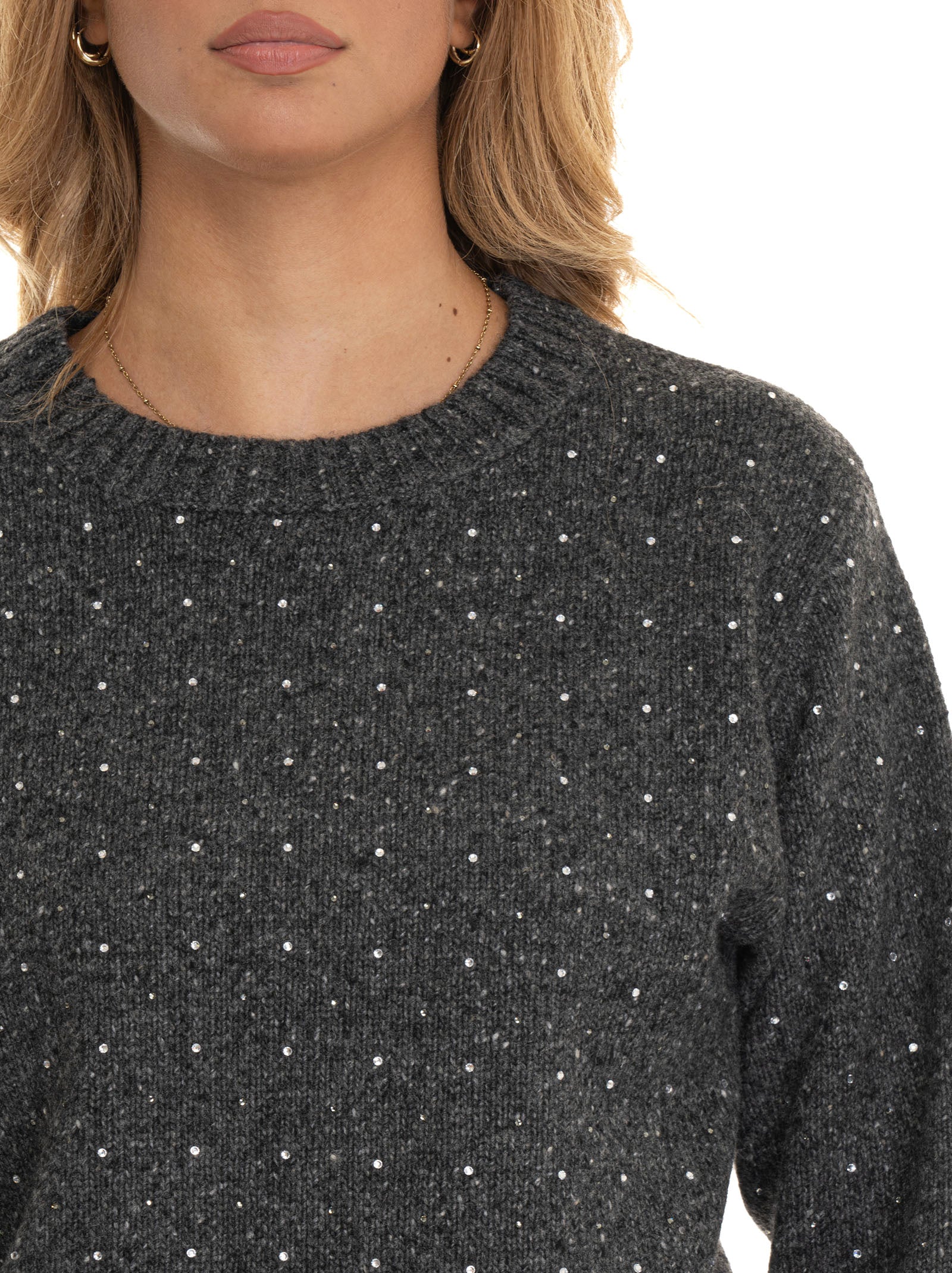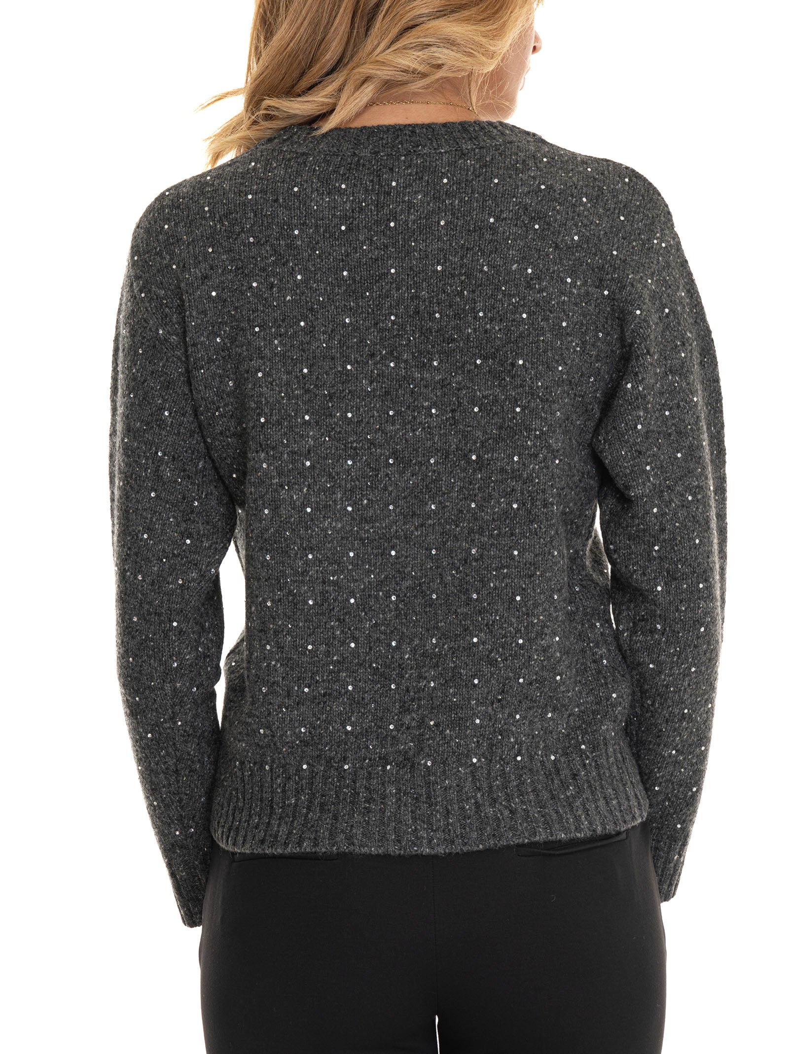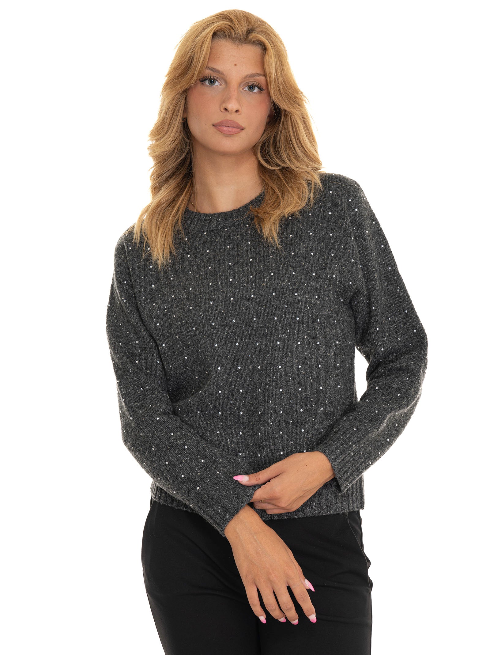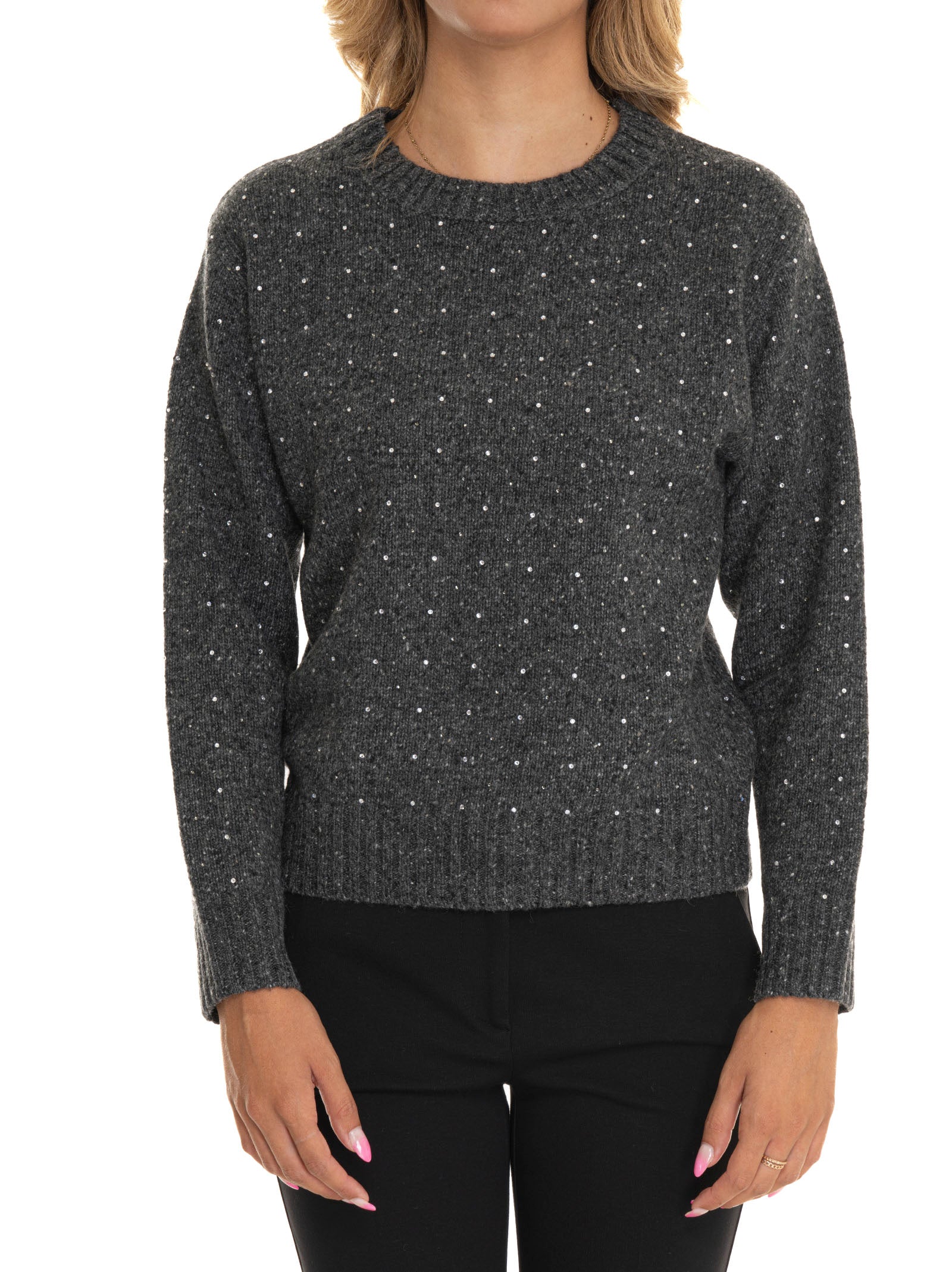 Maglia girocollo Pinko Avvinato, fondo e polsini a coste, applicazioni strass, composizione: 63% lana, 31% acrilico, 6% Alpaca, linea: PINKO.