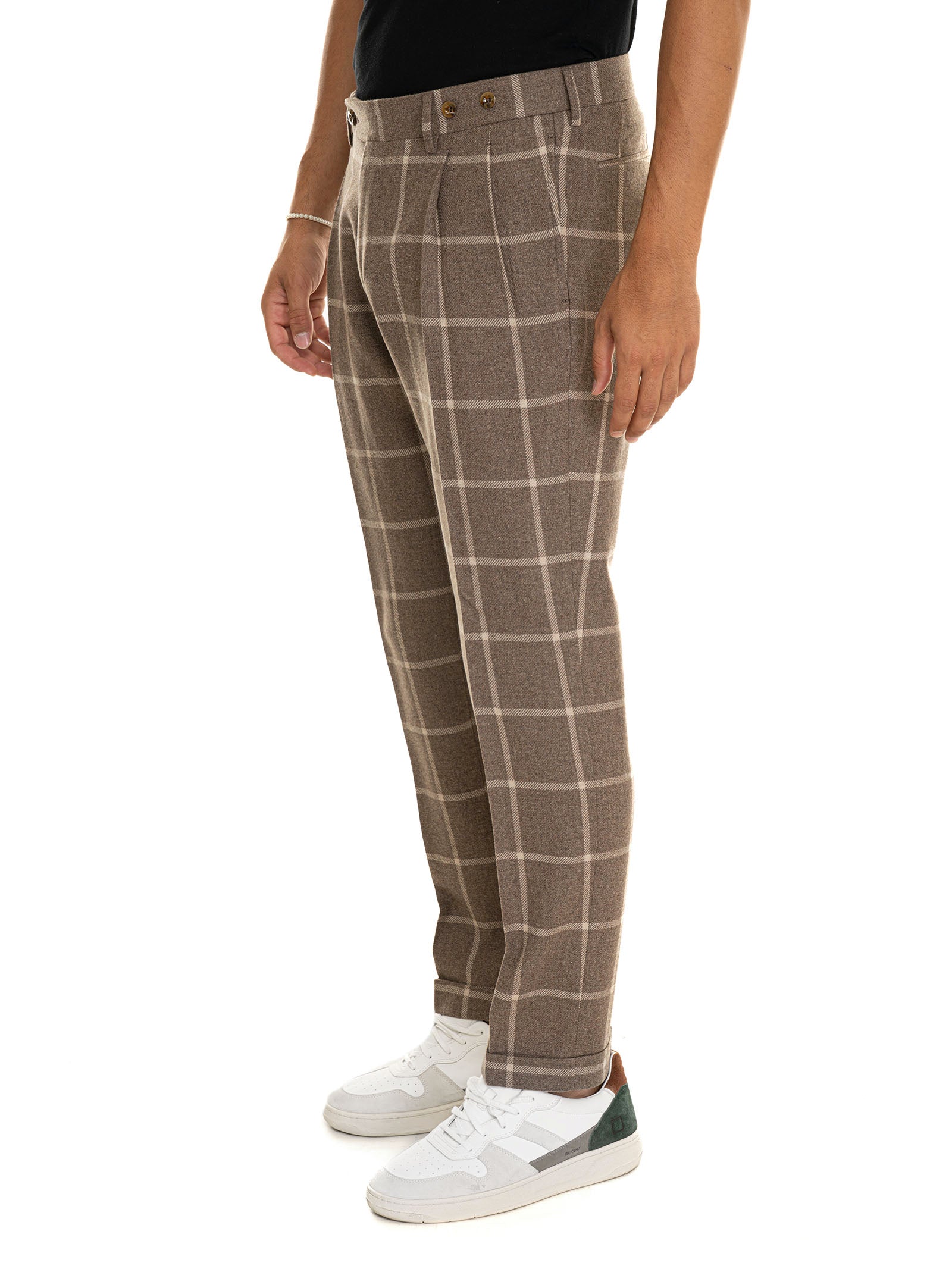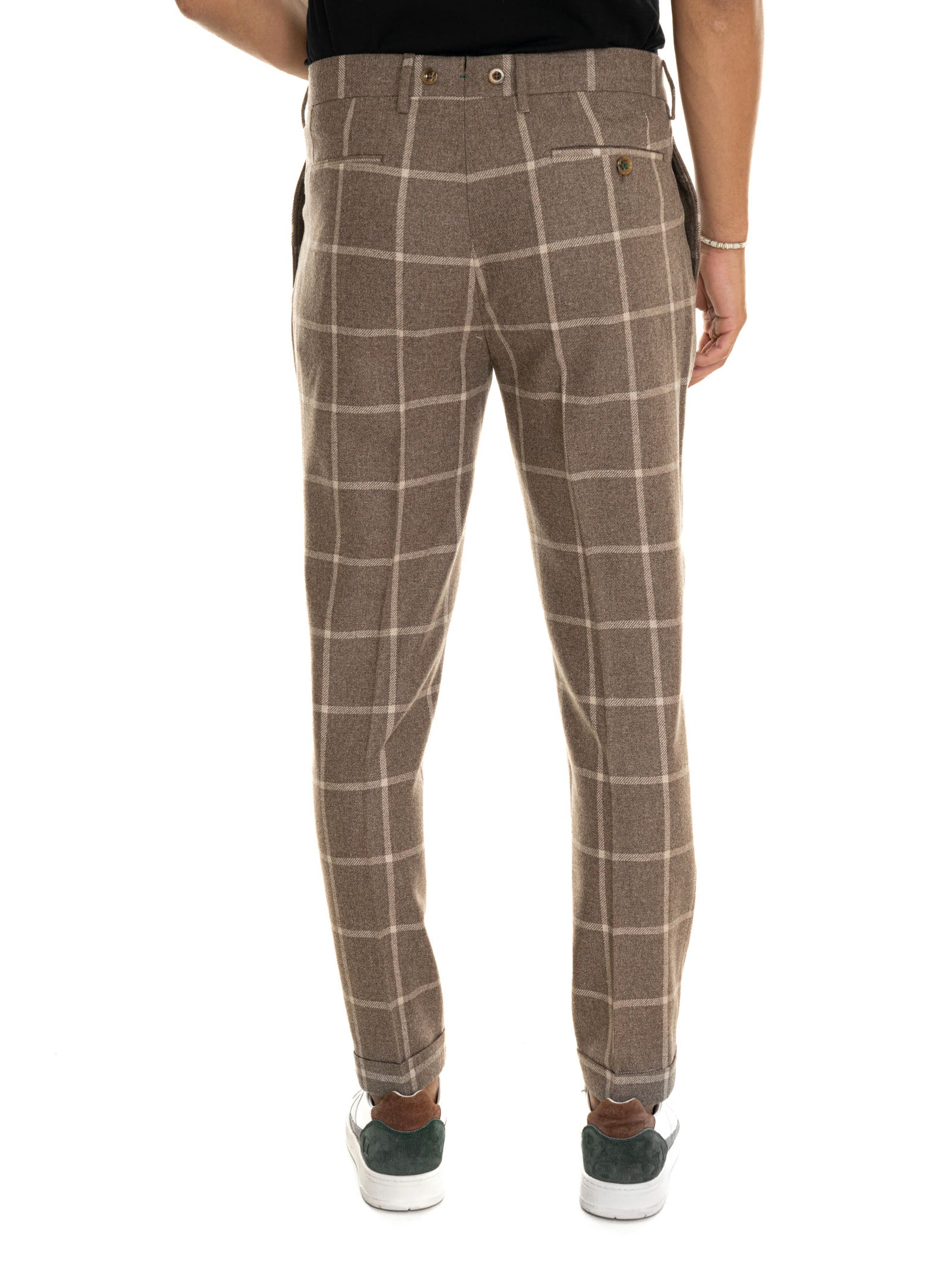 Pantalone modello chino Berwich BARBER, fantasia a quadri, pinces sul davanti, chiusura con bottone e zip a scomparsa, spacchetto sartoriale, fondo con risvolto, fondo 18 cm, composizione: 100% lana, linea: BERWICH.