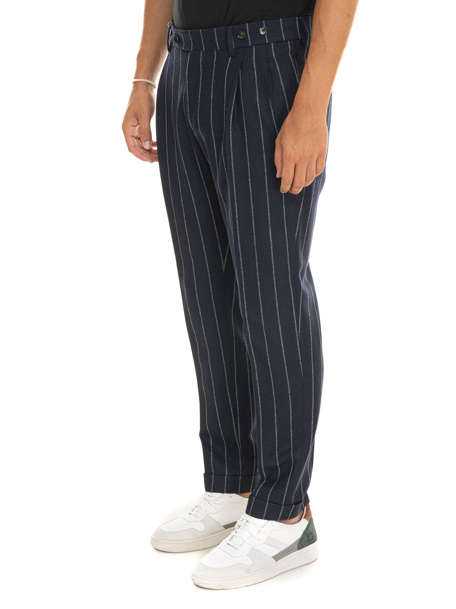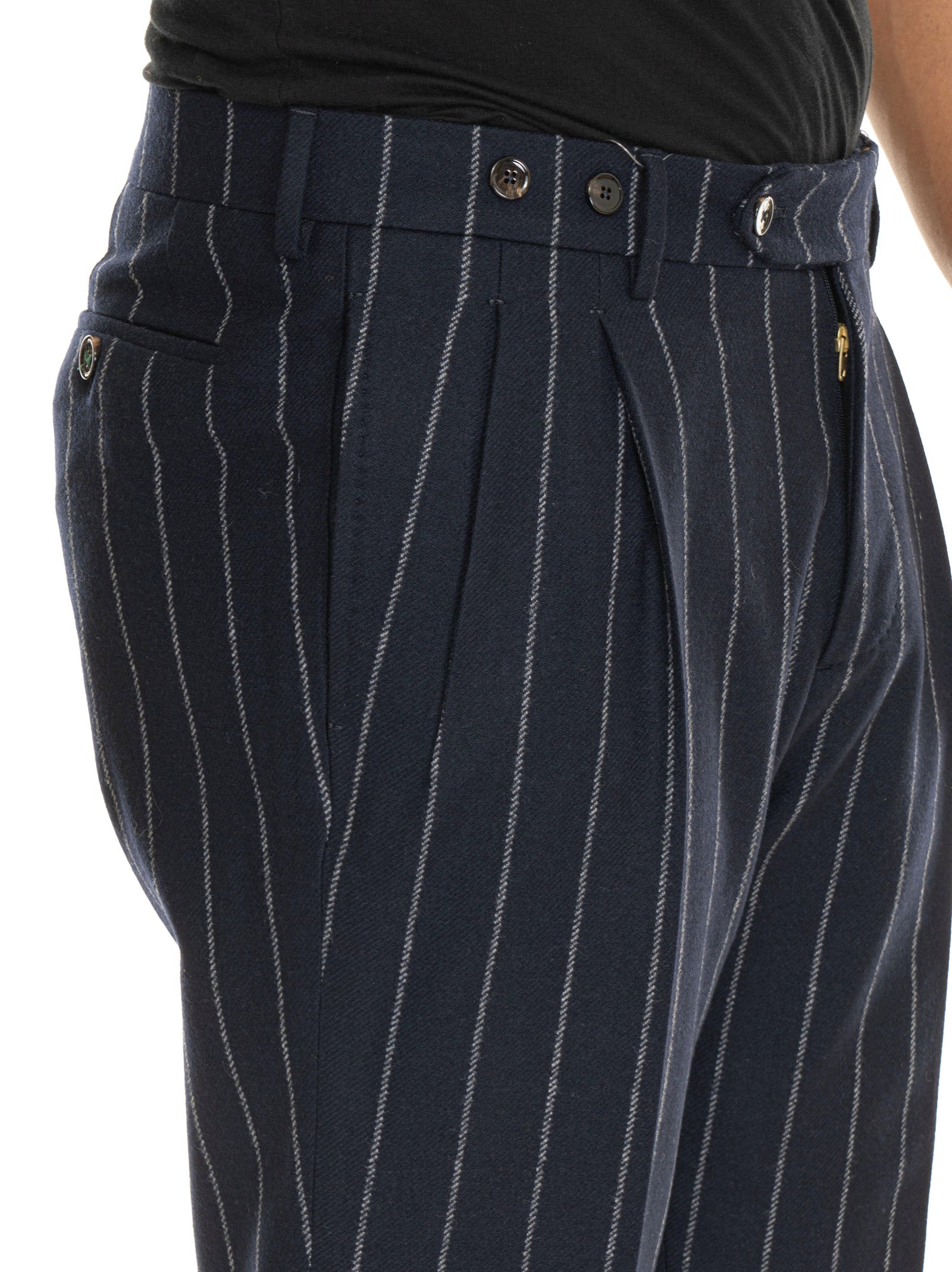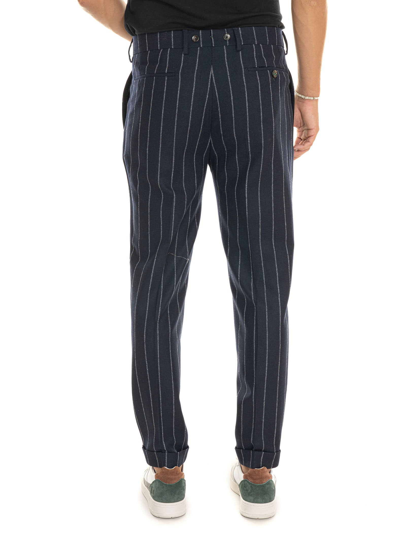 Pantalone modello chino Berwich BARBER, pinces sul davanti, fantasia riga pari, spacchetto sartoriale, fondo con risvolto, chiusura con bottone e zip a scomparsa, fondo 18 cm, composizione: 100% lana, linea: BERWICH.
