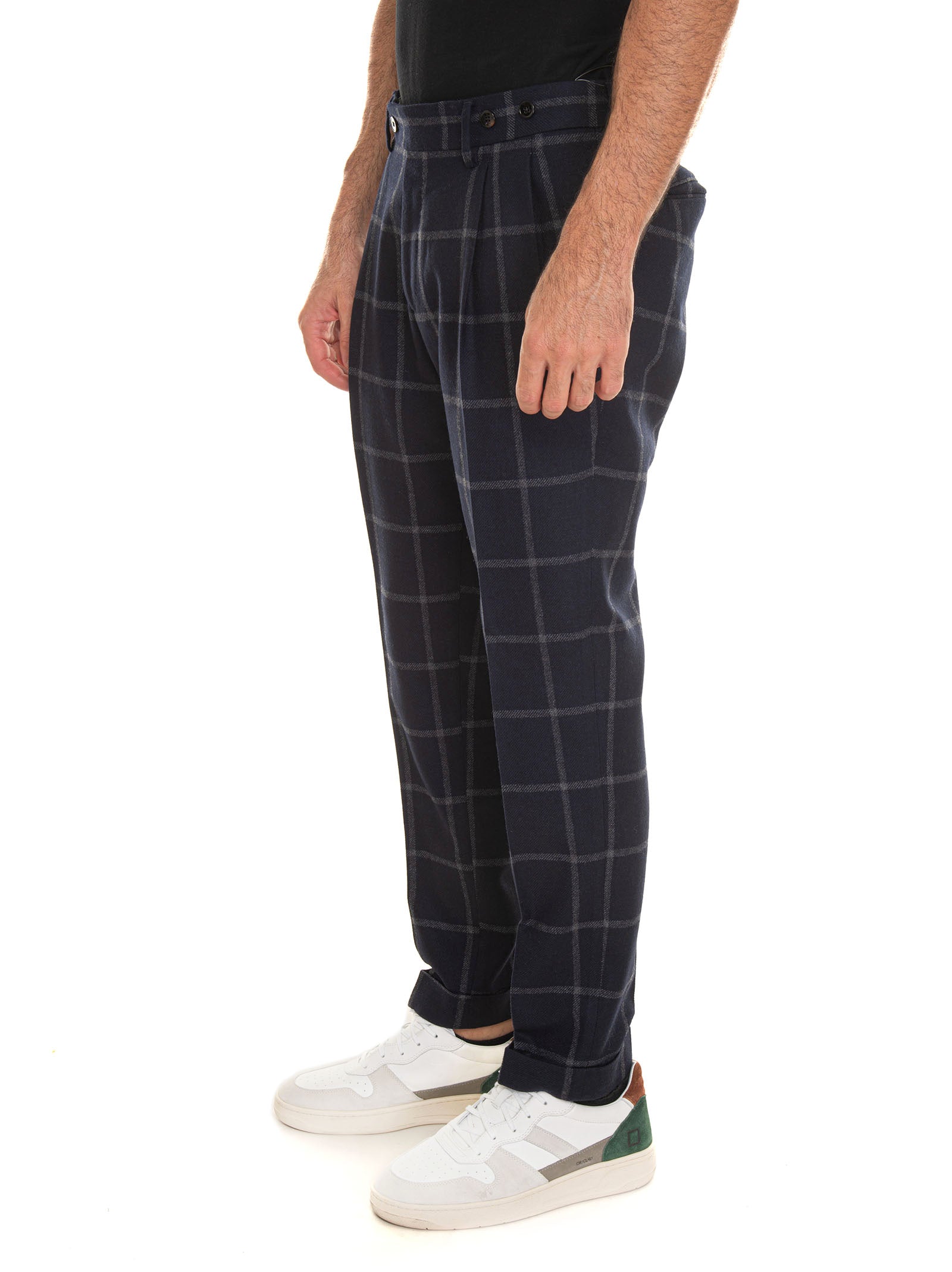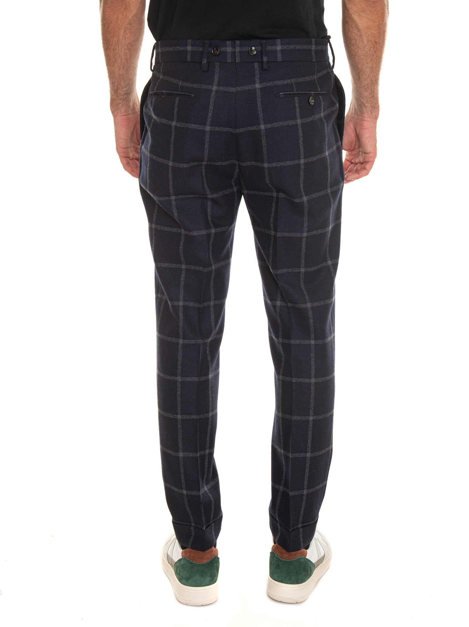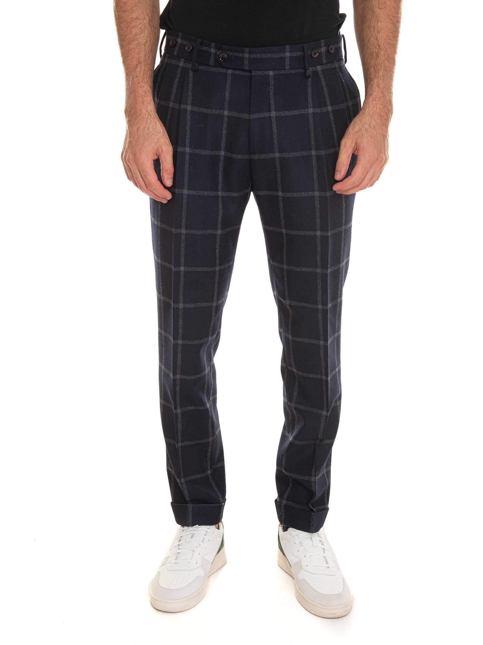 Pantalone modello chino Berwich BARBERGD, fantasia a quadri, spacchetto sartoriale, pinces sul davanti, frange sul fondo, fondo 17 cm, vestibilità carrot, composizione: 100% lana vergine, linea: BERWICH.