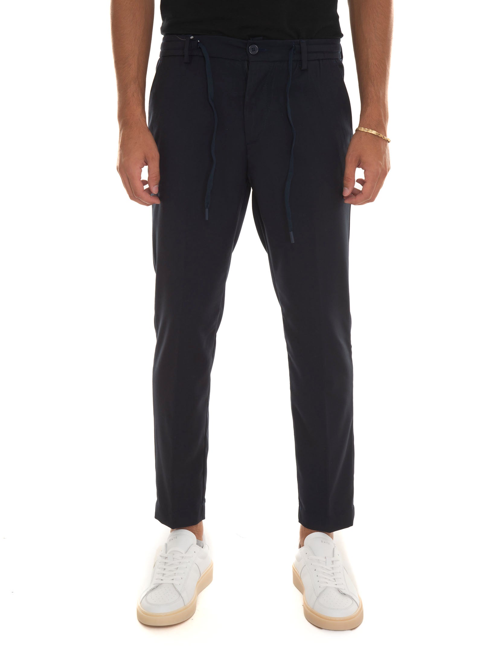 Pantalone modello chino, molla e laccio in vita, tinta unita, vestibilità regular, composizione: 63% poliestere, 34% viscosa, 3% spandex, spandexlinea: DETWELVE.