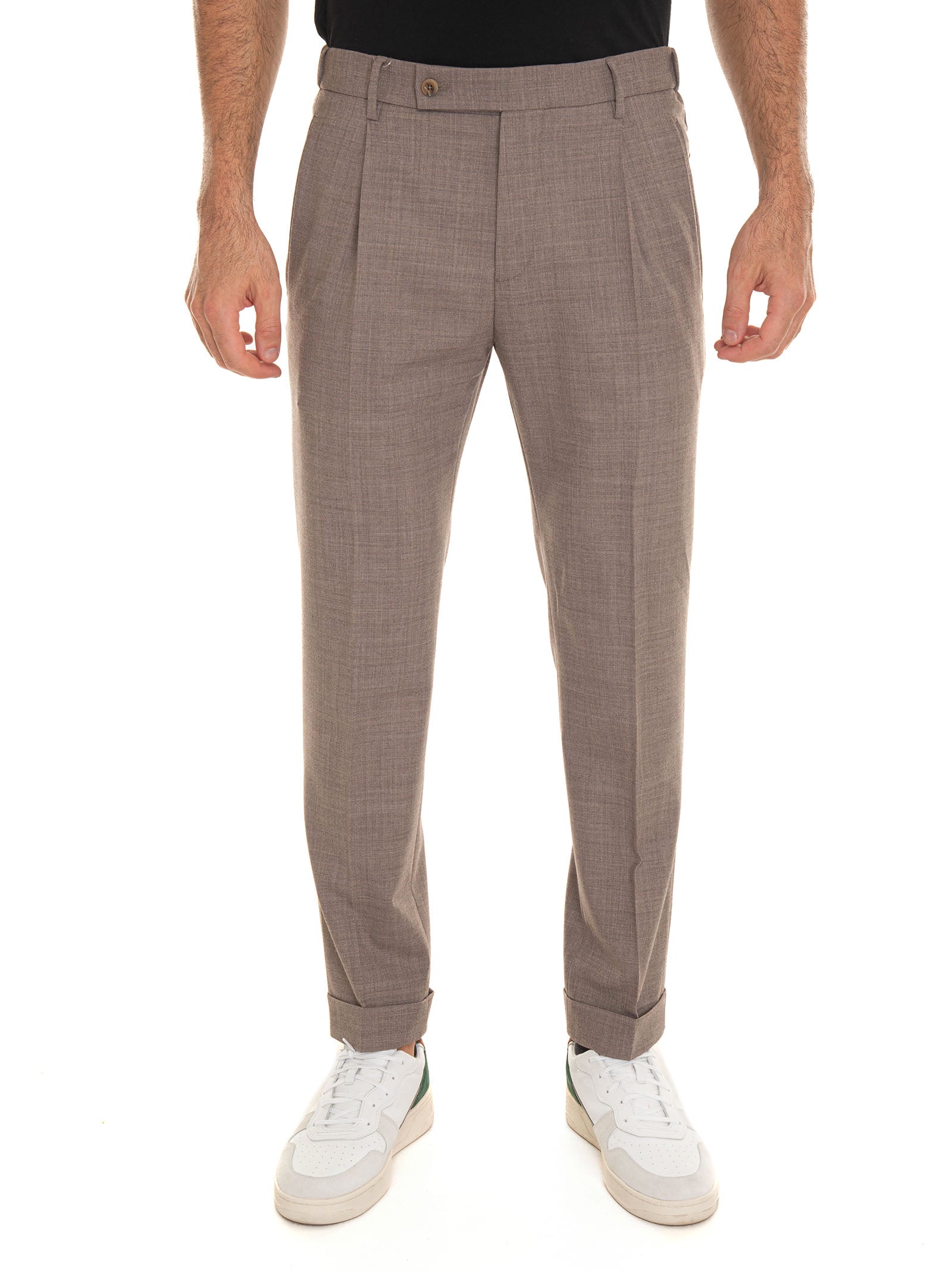 Pantalone modello chino Berwich RETROELAX, pinces sul davanti, molla in vita, risvolti sul fondo, fondo 17 cm, spacchetto sartoriale, composizione: 53% poliestere, 44% lana vergine, 3% elastan, linea: BERWICH.