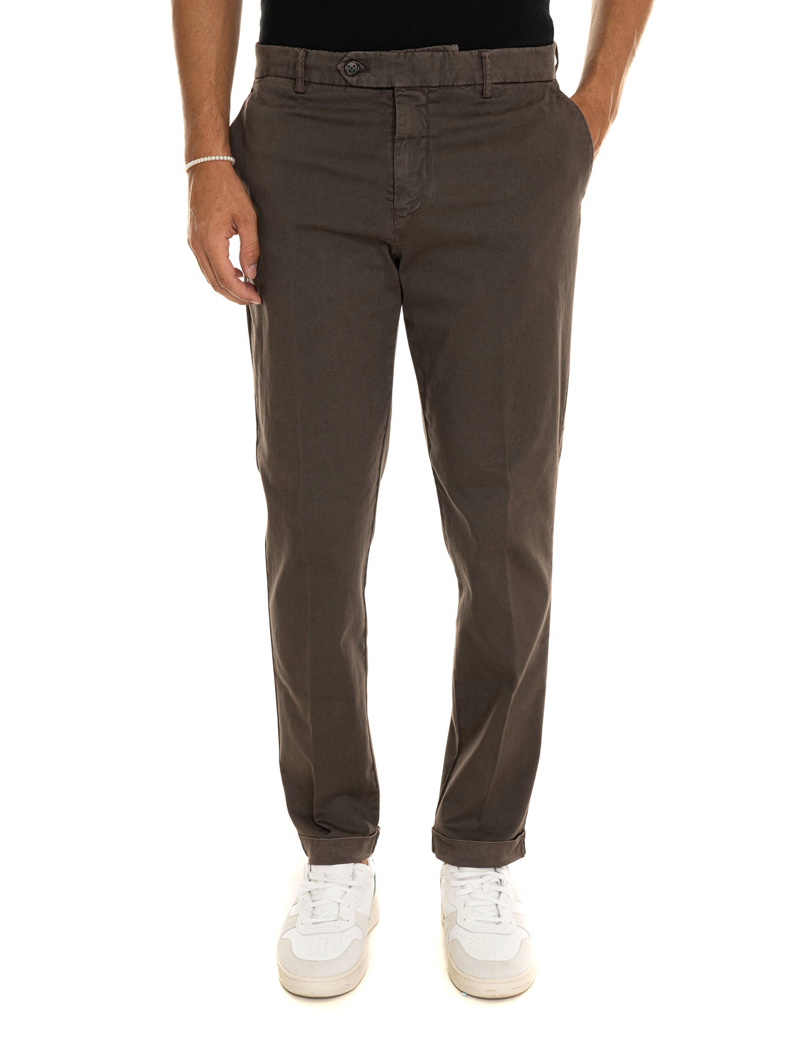 Pantalone modello chino Berwich YRETROGD, chiusura con bottone e zip a scomparsa, spacchetto sartoriale, fondo con risvolto, fondo 17 cm, composizione: 61% cotone, 34% lyocell, linea: BERWICH.