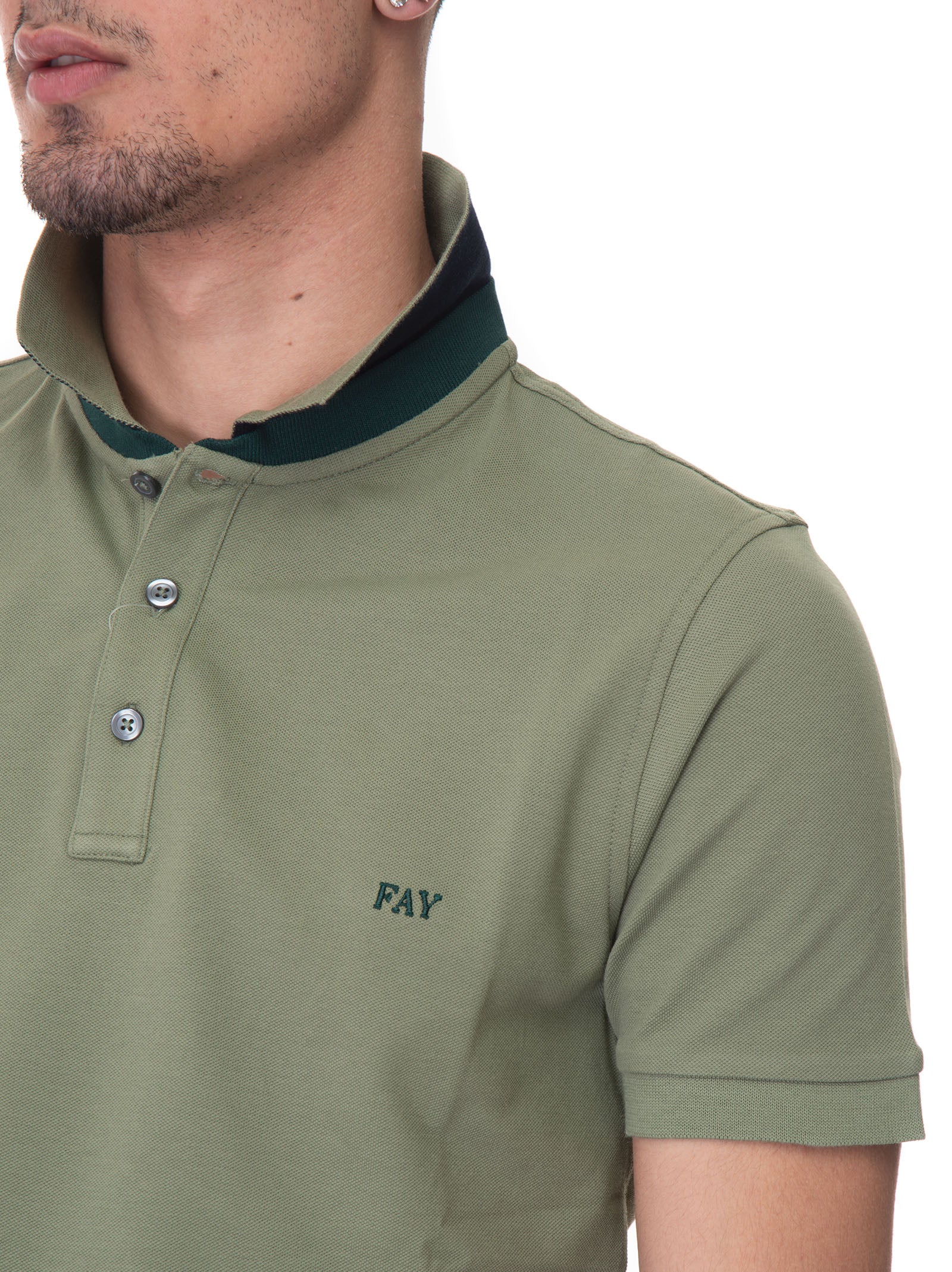 Polo manica corta, sottocollo in contrasto, logo sul petto, tessuto operato, spacchetti laterali, vestibilità slim, composizione: 97% cotone, 3% elastan, linea: FAY.