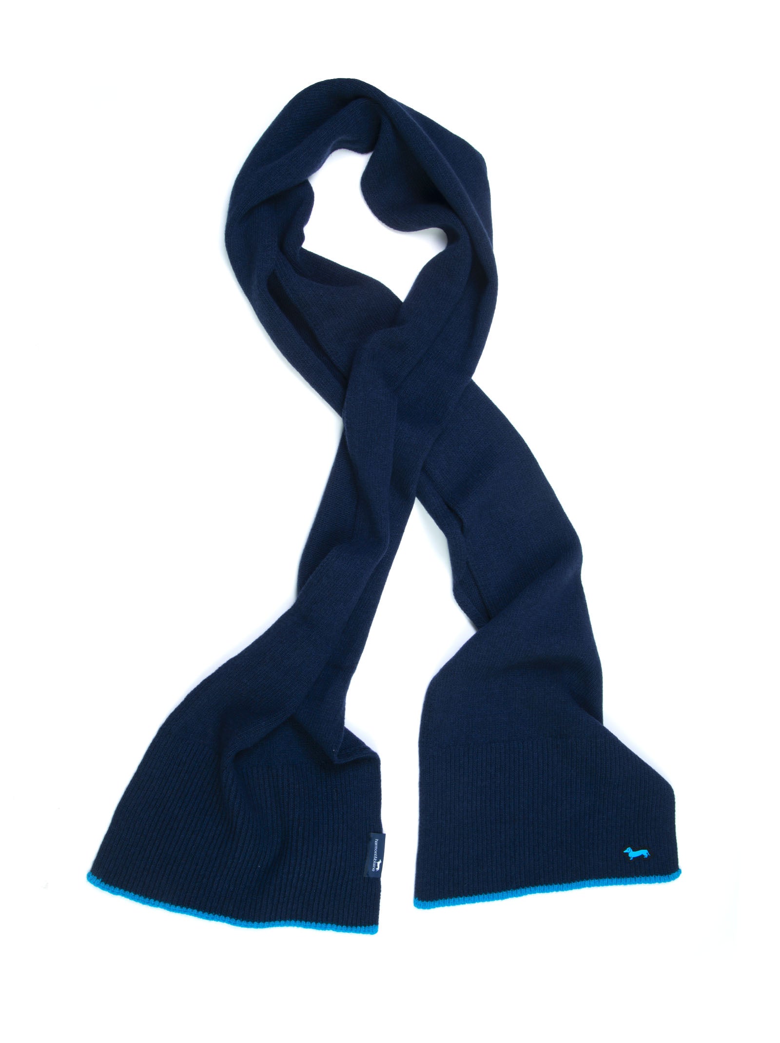Sciarpa, logo cucito a contrasto, profili in contrasto, composizione: 90% lana, 10% cachemire, linea: HARMONT & BLAINE.