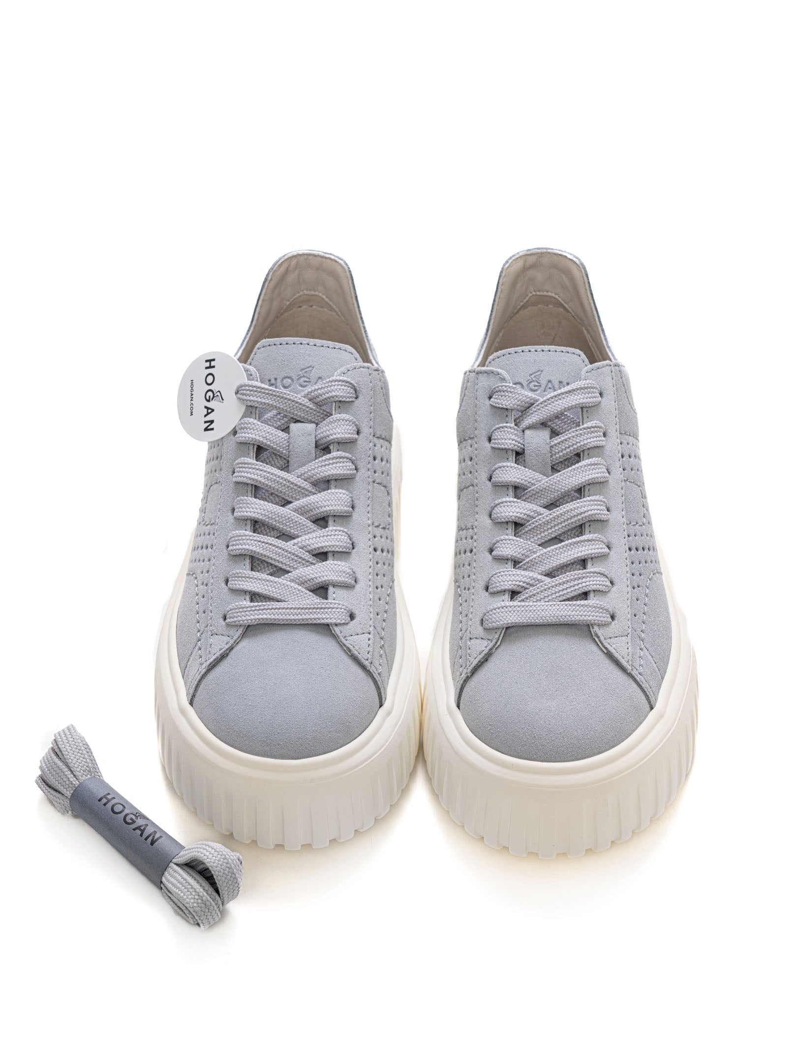 Sneakers in camoscio Hogan Hstripes, logo laterale traforato, suola in gomma dentellata, plantare estraibile memory foam technology, lacci di ricambio, composizione: 100% pelle, interno: 100% gomma, linea: HOGAN.