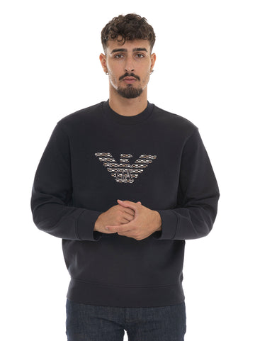 Maglia girocollo, logo posteriore, tinta unita, composizione: 50% acrilico, 50% lana, linea: EA7.