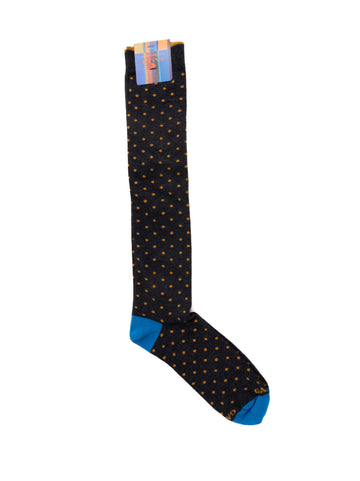 Calzino lungo, fantasia pois, punta e tallone in contrasto di colore, composizione: 83% cotone, 15%...