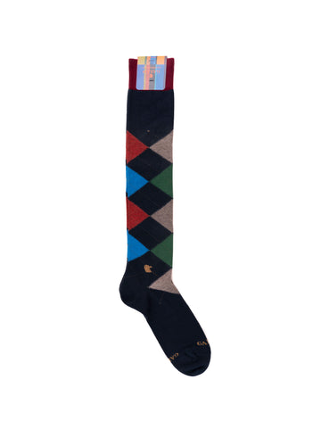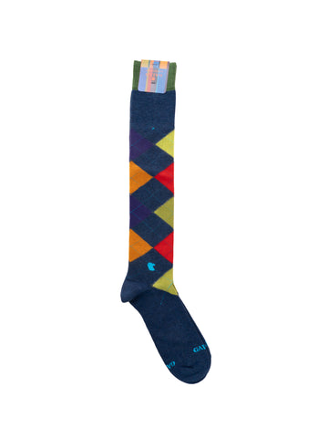 Calzino lungo, fantasia rombi, composizione: 78% cotone, 20% poliammide, 2% elastan, linea: GALLO.