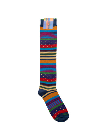 Calzino lungo, fantasia rigata, fantasia pois, punta e tallone in contrasto di colore, composizione: 81%...