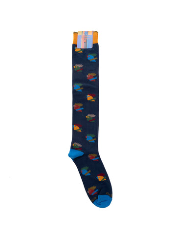 Calzino lungo, fantasia gallo, punta e tallone in contrasto di colore, composizione: 85% cotone, 13%...
