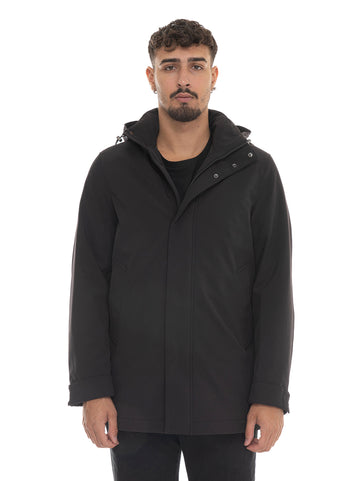 Giaccone Woolrich Soft shell barrow, cappuccio staccabile, chiusura zip con doppio cursore + bottoni, tasche...