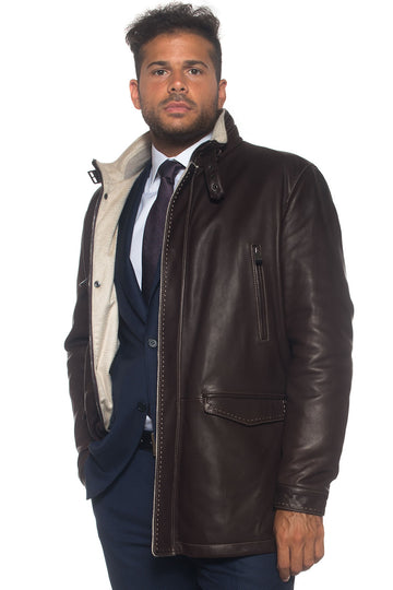 Giaccone, collo in castoro, chiusura zip con doppio cursore + bottoni, toppe ai gomiti in...