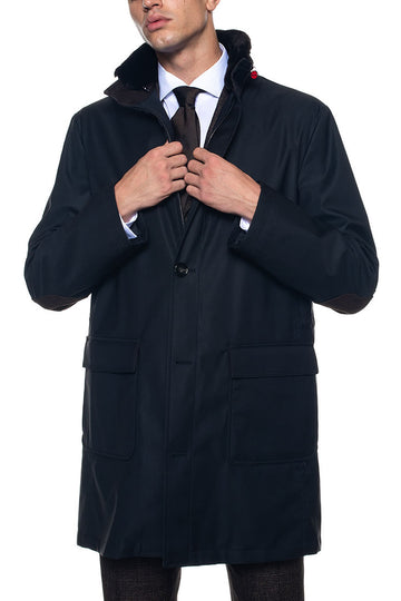 Giaccone in tessuto, pelliccia removibile, toppe ai gomiti, chiusura zip con doppio cursore + bottoni,...