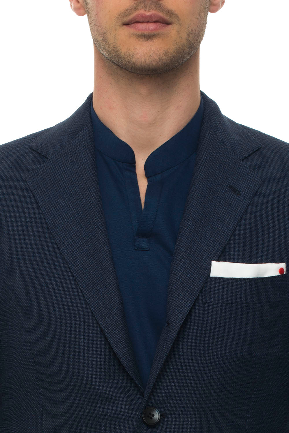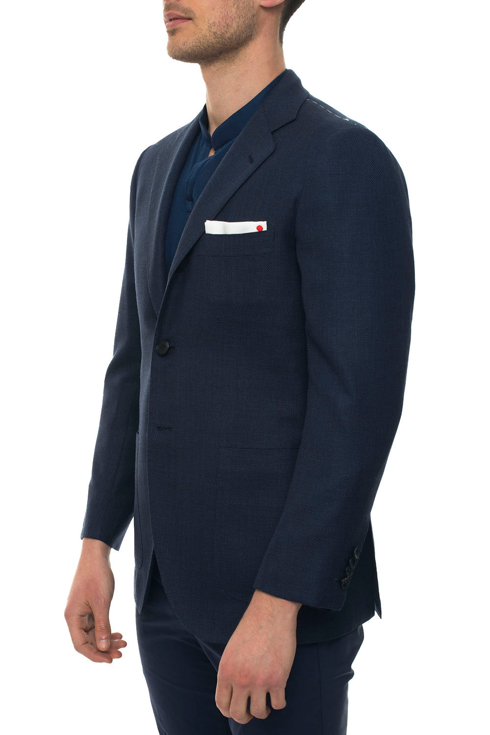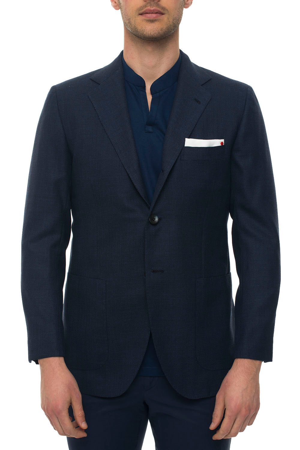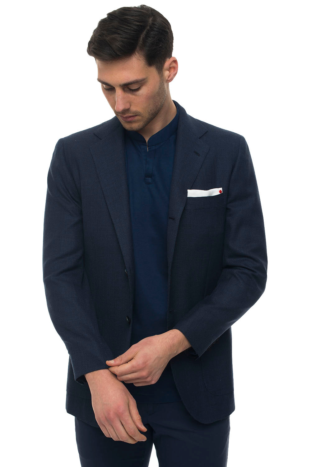 Blazer 3 bottoni sfoderato e decostruito, microfantasia, hand made, 2 spacchi laterali, lunghezza giacca 74cm (per tg.50), made in italy, vestibilità regular, composizione: 100% lana vergine, interno: 100% cupro, linea: KITON.