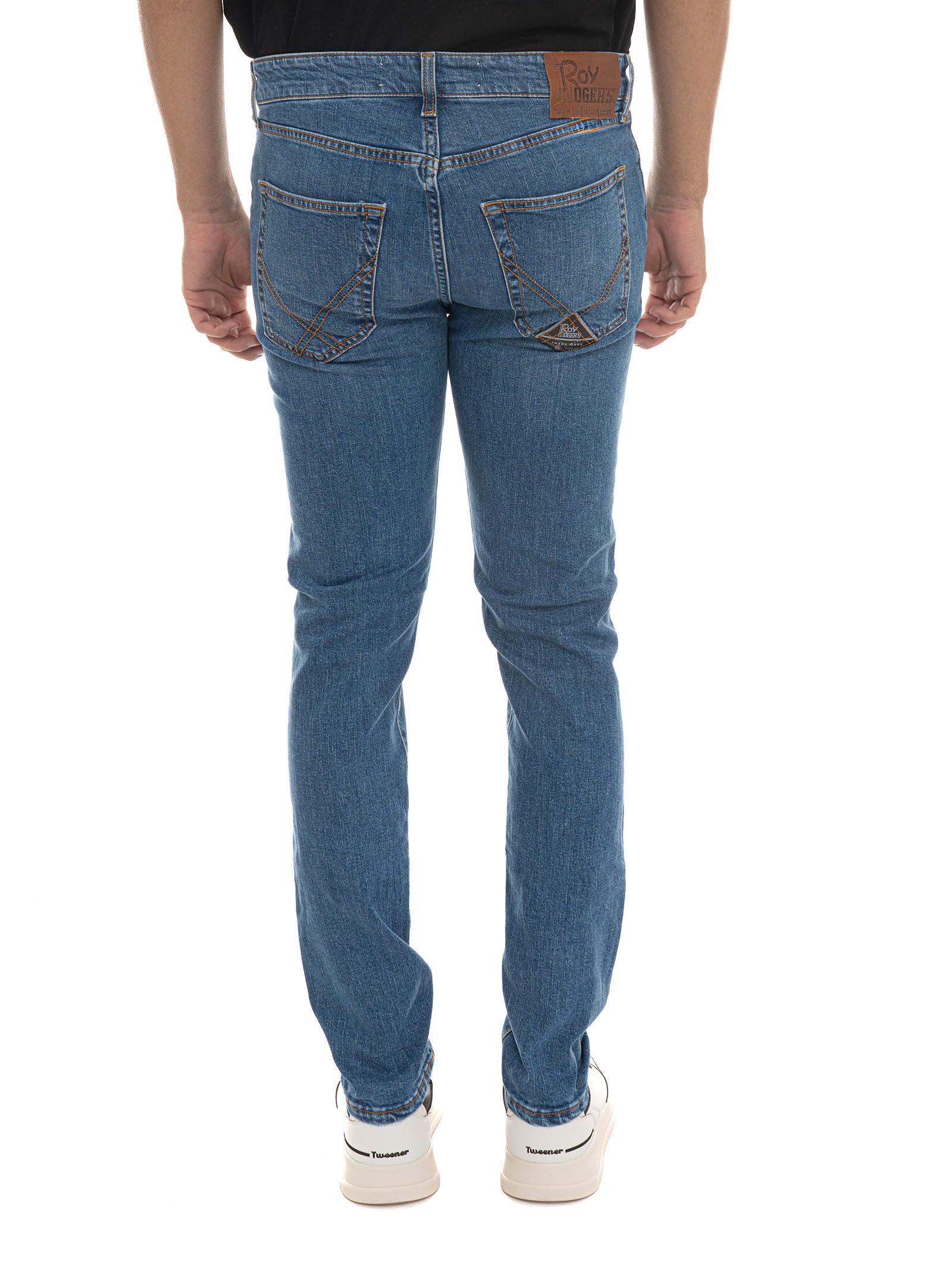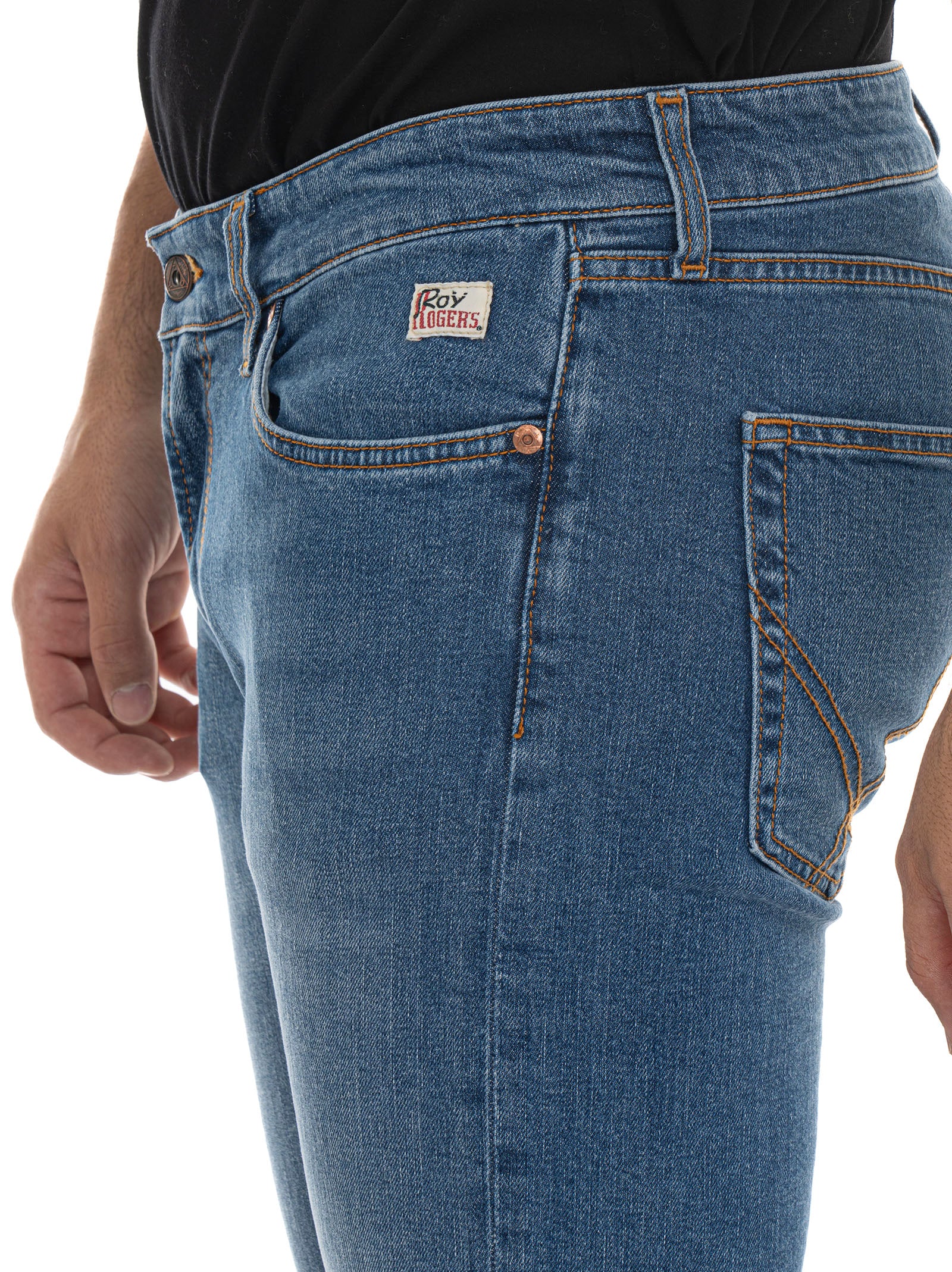 Jeans 5 tasche Roy Rogers 517, vita media, gamba dritta, impunture in contrasto, salpa in pelle con logo, composizione: 87% cotone, 11% poliestere, 2% elastan, linea: ROY ROGERS.