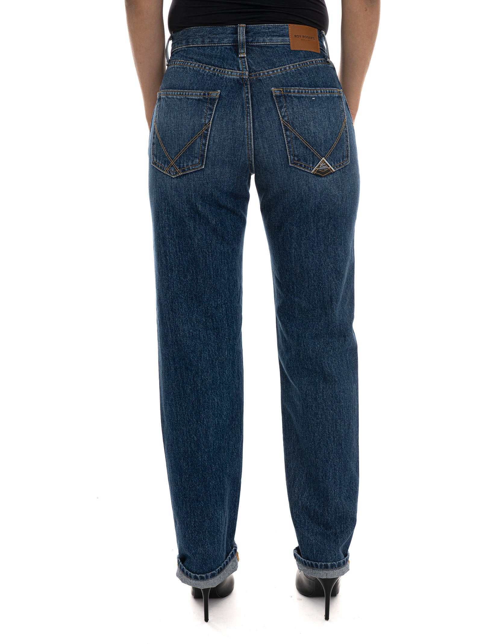 Jeans 5 tasche Roy Rogers Regular 90's , vita alta, gamba dritta, chiusura con bottone e zip a scomparsa, impunture in contrasto, composizione: 100% cotone, linea: ROY ROGERS.