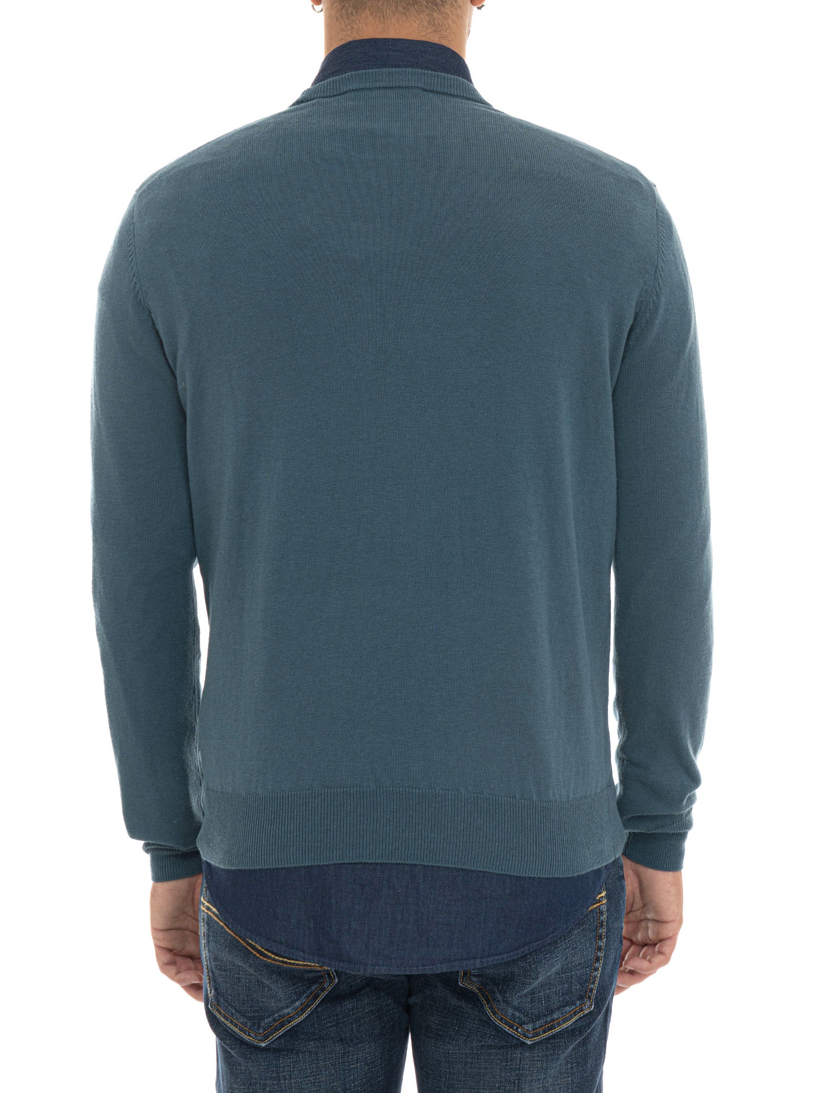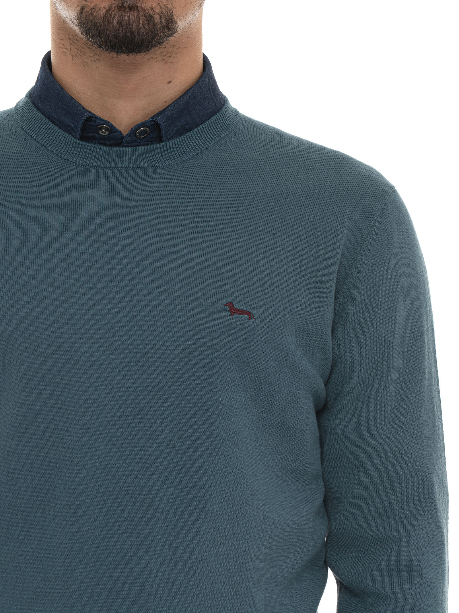 Maglia girocollo, tinta unita, logo cucito a contrasto, polsini e molla elasticizzati, composizione: 60% cotone, 40% lana, linea: HARMONT & BLAINE.