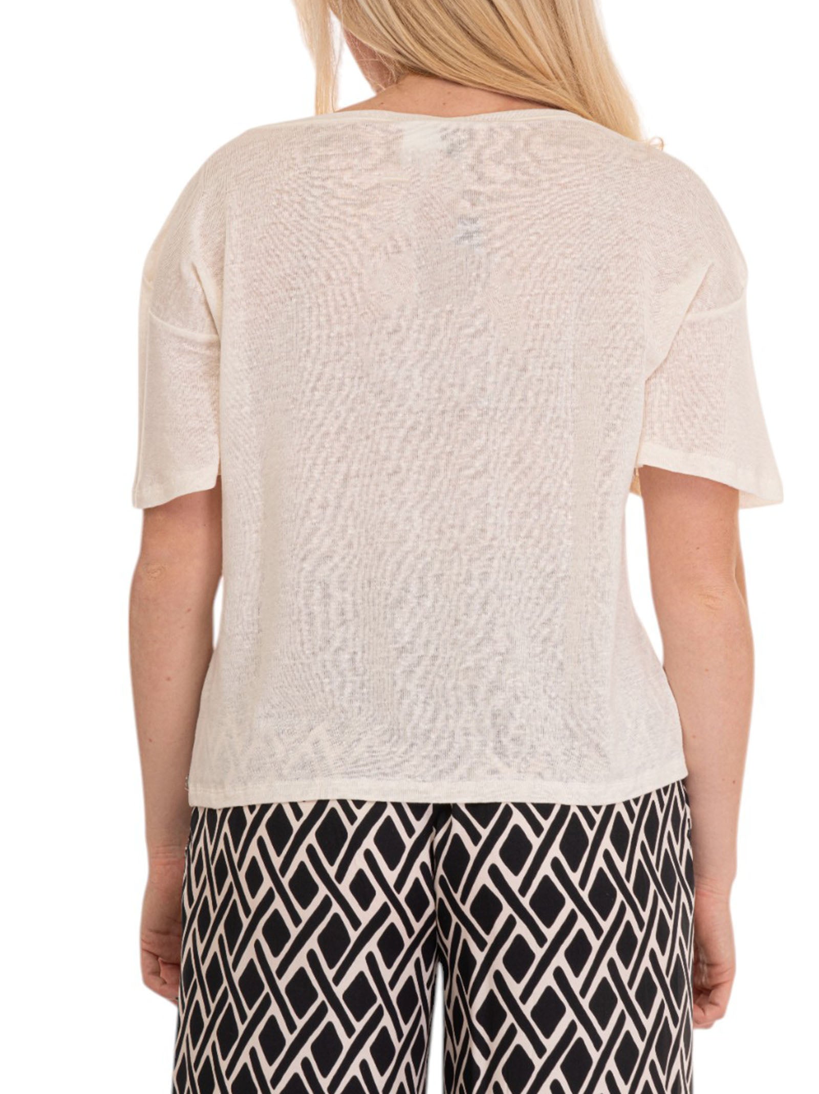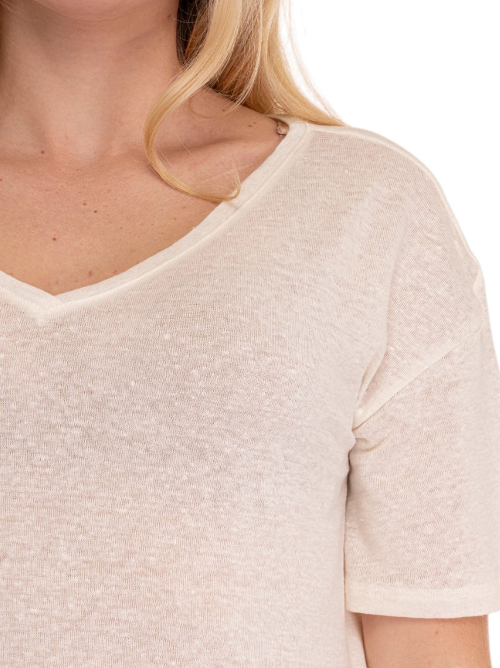 T-shirt morbida Pennyblack Cartone, scollo a v, mezza manica, tessuto di lino, spalla scesa, composizione: 96% lino, 4% elastan, linea: PENNYBLACK.